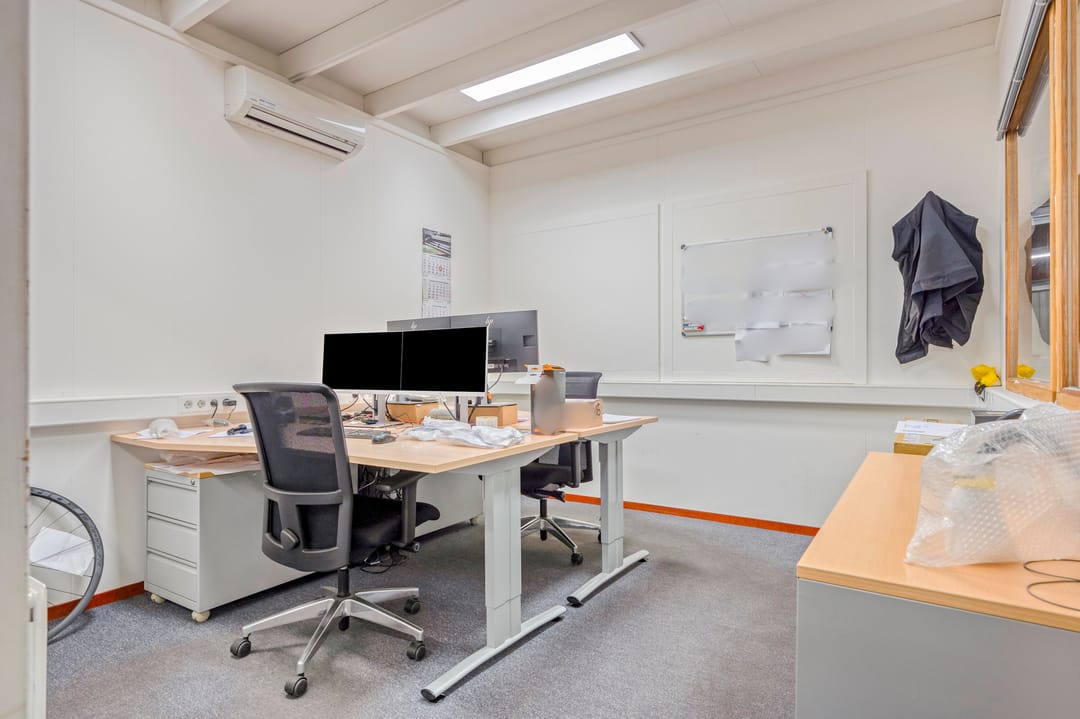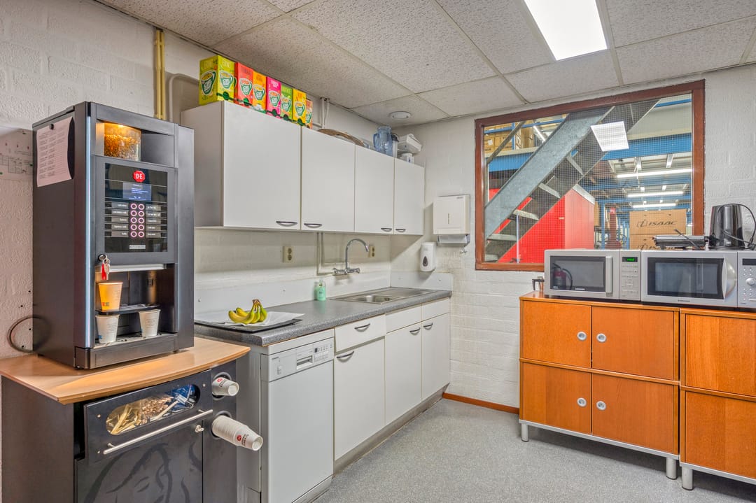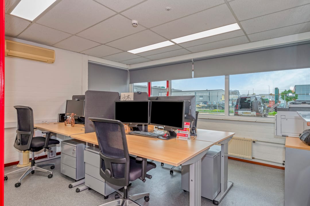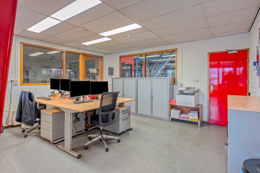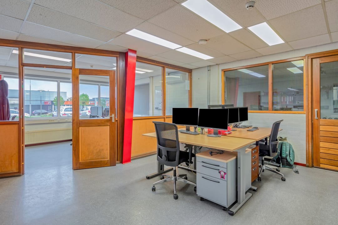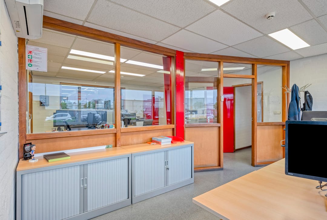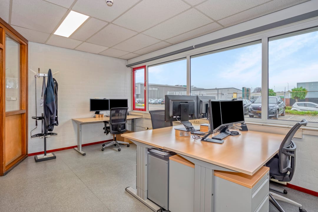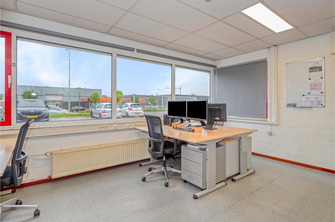 Het kantoor is traditioneel gebouwd met betonblokken en een plat dak met bitumineuze bedekking. De kantoren zijn door de jaren heen opgefrist met de aanwezigheid van ledverlichting en grotendeels airco's. De loods is opgebouwd middels een betonnen borstwering en staalconstructie met damwandplaten. Het dak is v.v. geïsoleerde damwandplaten met lichtkoepels. De loods beschikt verder over 2 overheadpoort (4m breed x 4,5m hoog), goederenlift (tot 2.000 kg) en ledverlichting. De aanwezige elektriciteitsaansluiting bedraagt 3x36A.