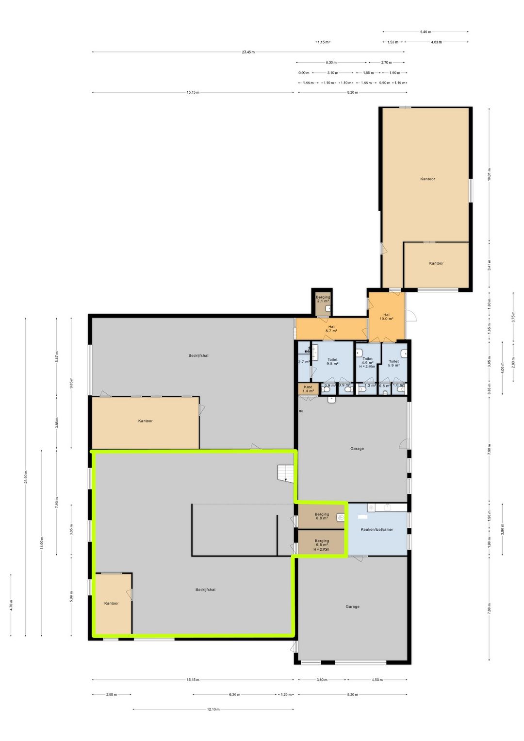 De hoogte van de bedrijfsruimte bedraagt circa 5,40 meter.