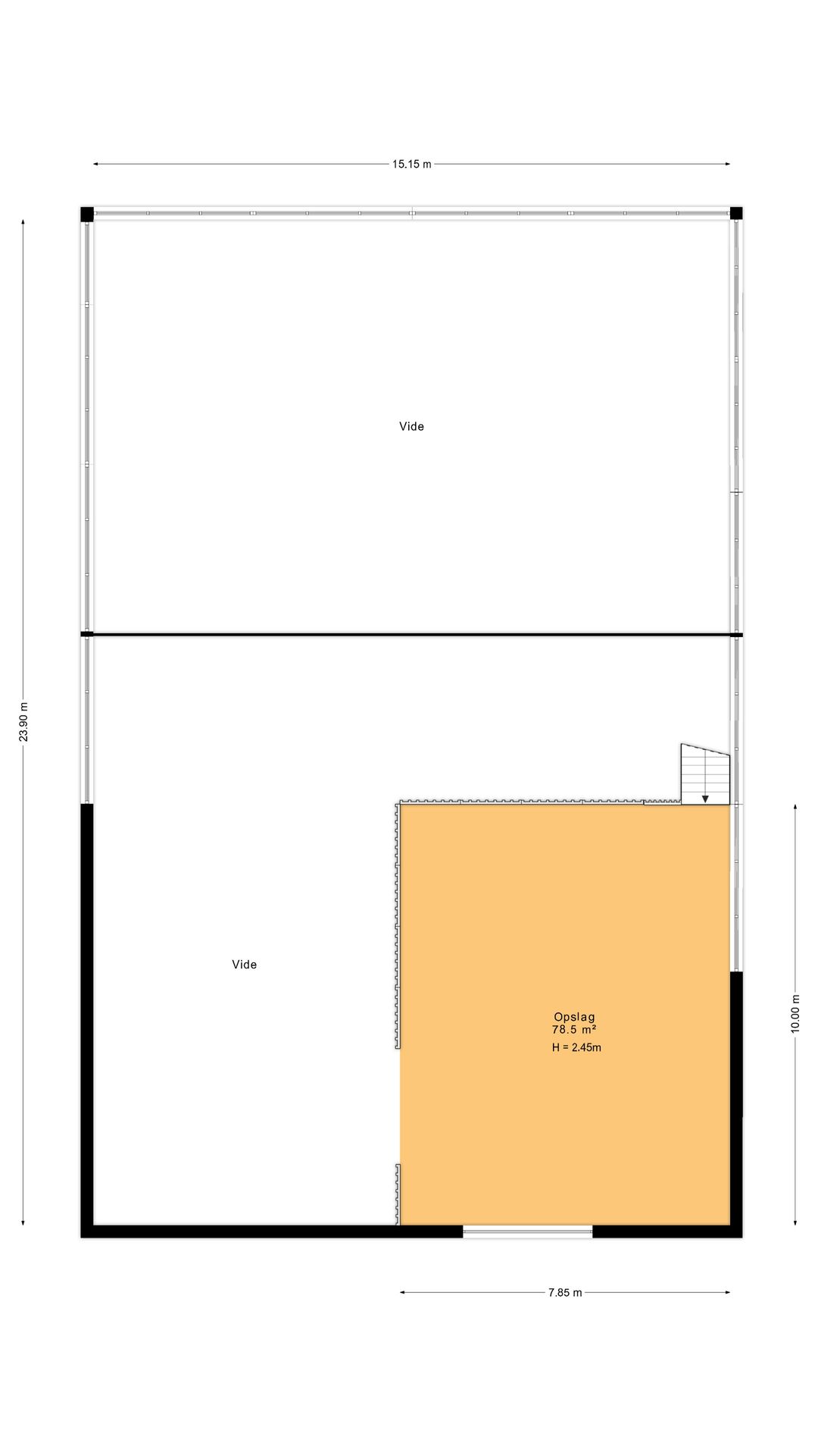 Bedrijfsruimte: circa 328 m² v.v.o. (inclusief verdiepingsvloer van ongeveer 79 m²)