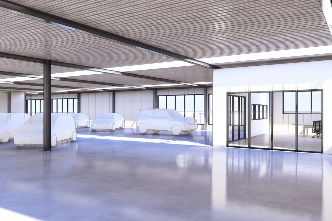 Deze unieke bedrijfsruimte bevindt zich op de tweede verdieping en is geschikt voor vele doeleinden. Doordat er slechts twee kolommen in de ruimte aanwezig zijn is het object ideaal in te richten als sportschool, pakketsorteercentrum of als autoshowroom. De aanwezige autolift / goederenlift heeft een capaciteit van circa 5.000 kg. Een oplevering inclusief kantoren, kleedkamers of andere voorzieningen is mogelijk.