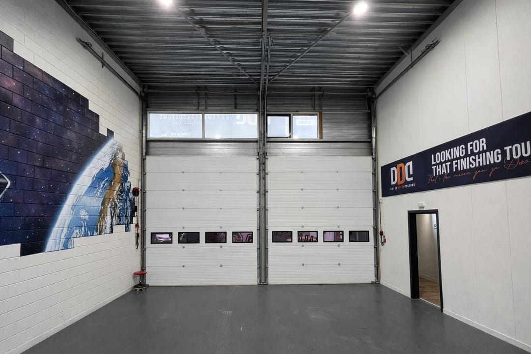 - Twee (2) elektrisch bedienbare overheaddeuren van ca. 3,60 meter breed en ca. 4,20 meter hoog;