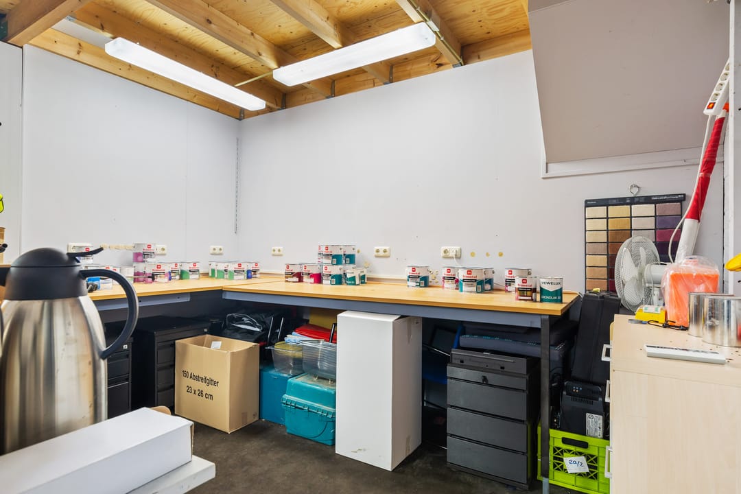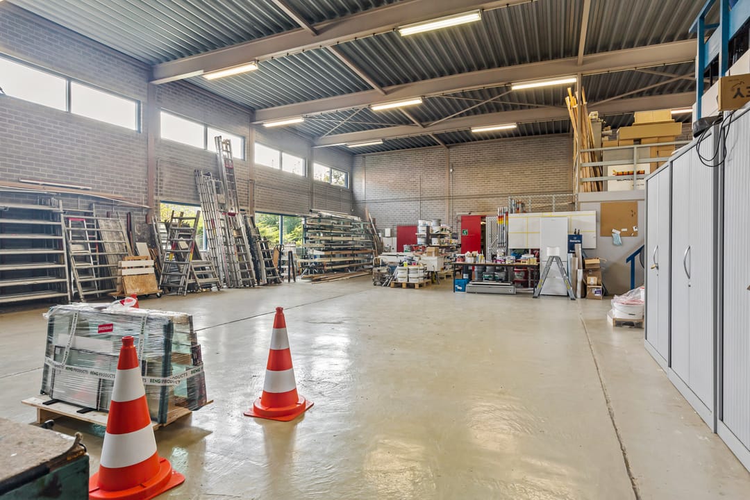 + Bedrijfshal: De ruime hal is multifunctioneel en beschikt over een overheaddeur, wat het eenvoudig maakt om goederen en materialen te verplaatsen. Deze open ruimte biedt volop mogelijkheden voor opslag, productie of andere bedrijfsactiviteiten.