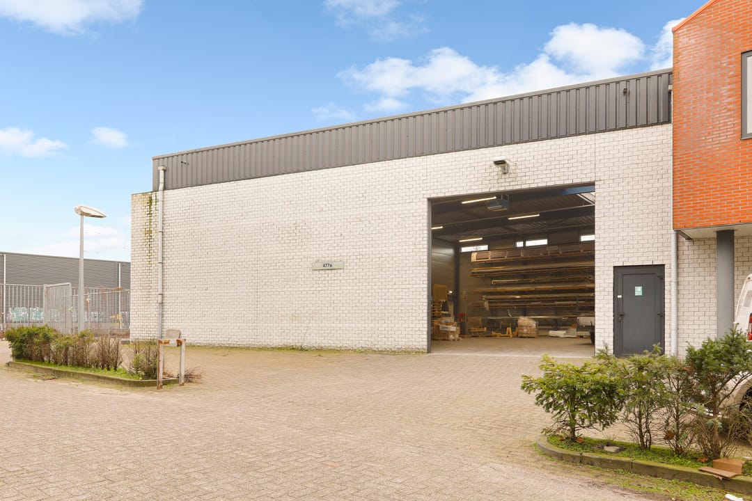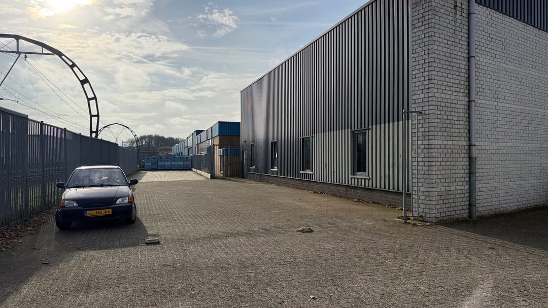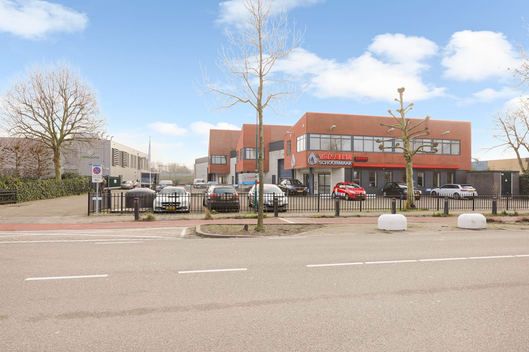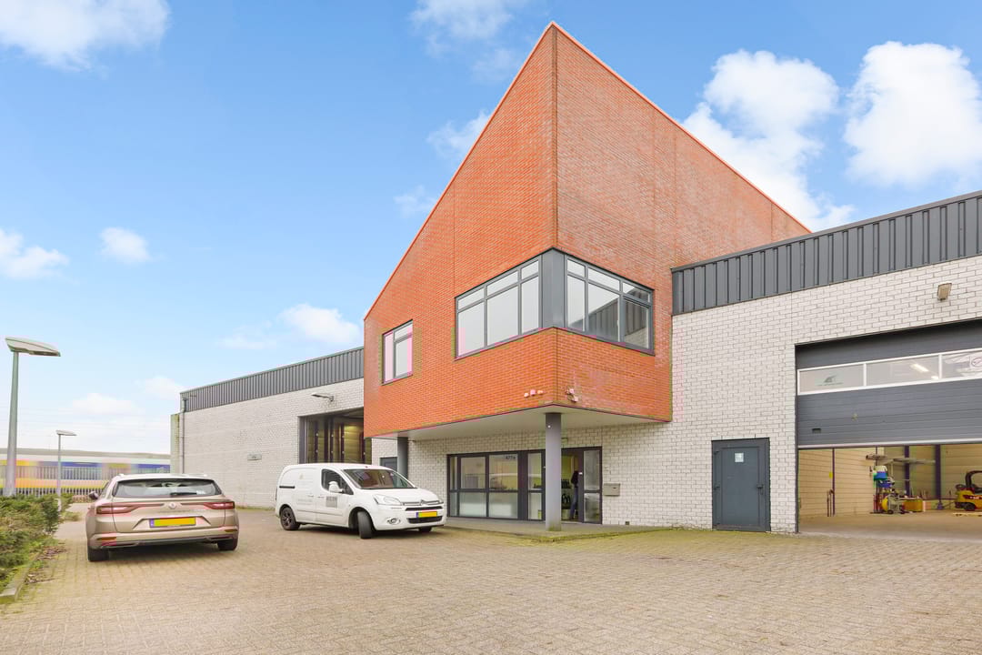 Moderne bedrijfsunit van circa 508 m² met bedrijfs-/opslagruimte, kantoorruimte, 12 parkeerplaatsen en ca. 233 m² verhard parkeer-/buitenterrein, gelegen op de hoek van een rij geschakelde bedrijfspanden.