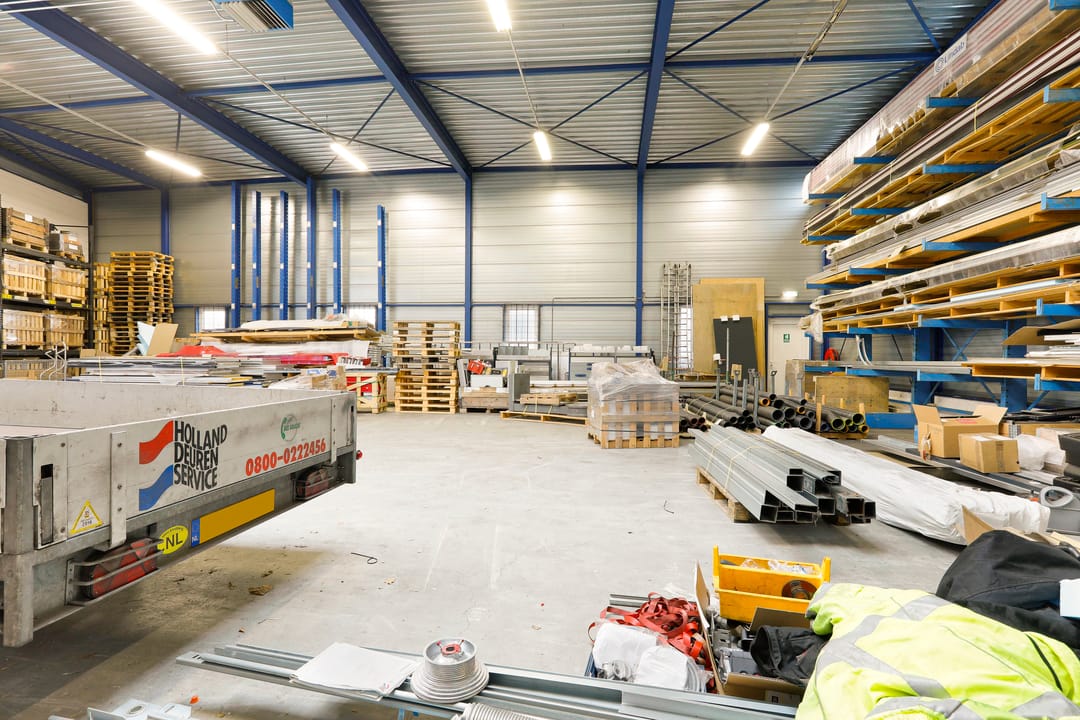 De bedrijfsruimte is voorzien van een elektrische overheaddeur, heeft een vrije hoogte van circa 5,79 meter en een vloerbelasting van circa 1.500 kg/m². Dankzij de lichtstraat en de gevelramen beschikt de ruimte over een royale hoeveelheid daglichttoetreding.