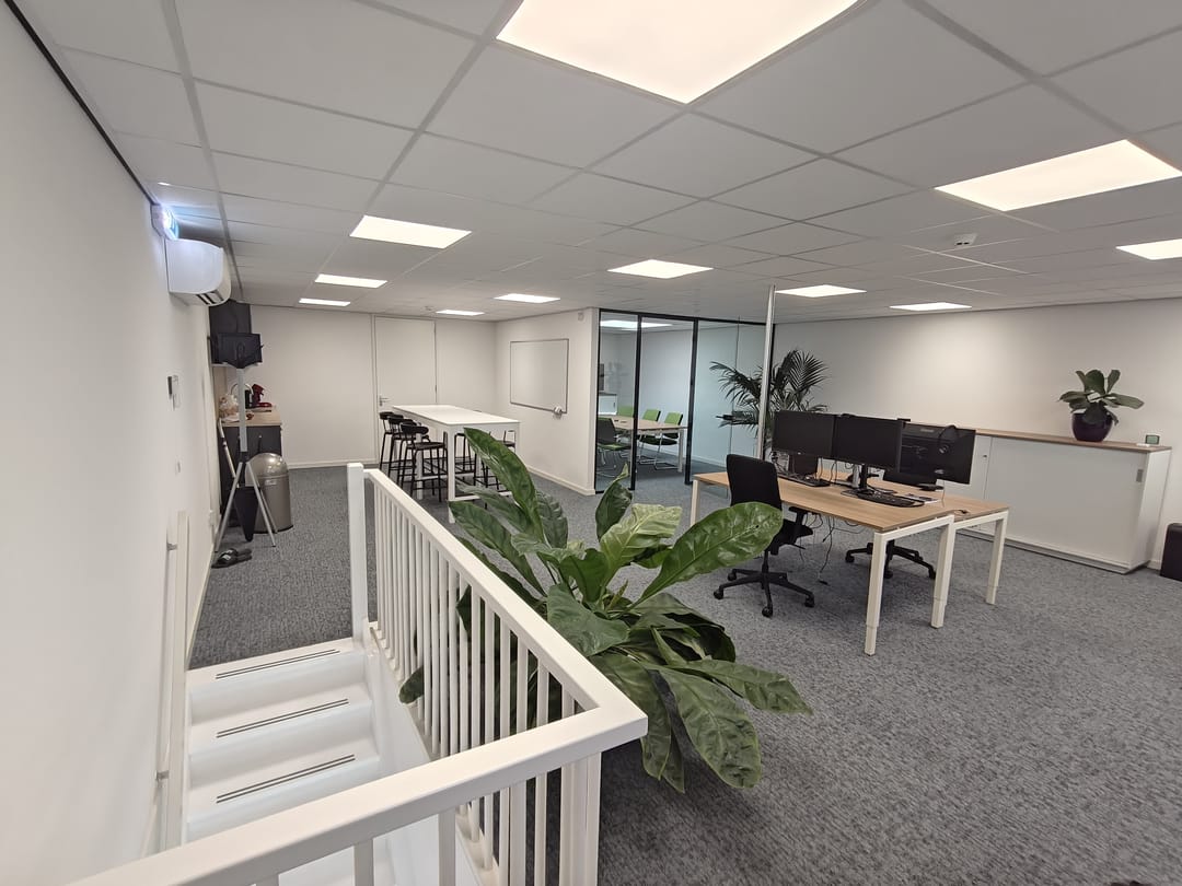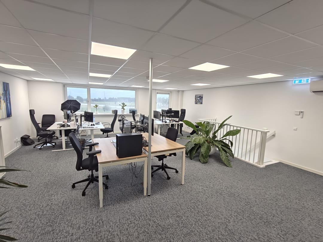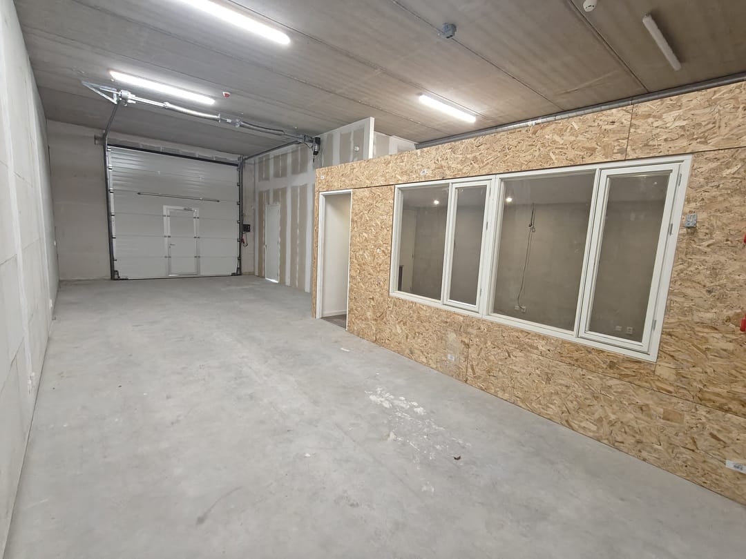 Aangeboden op een ZICHTLOCATIE vanaf de Europaweg een bedrijfsunit van in totaal ca. 184 m2. De begane grond betreft een bedrijfsruimte met elektrische overheaddeur van ca. 92 m2 inclusief een ingebouwde en demonteerbare kantoorruimte met pantry en toilet. De eerste verdieping betreft een TURNKEY kantoorruimte van ca. 92 m2. Deze ruime kantoorruimte is voorzien van een strakke pantry, systeemplafond met ledverlichting, nette vloerbedekking, airco en een aparte spreekruimte met glazen wanden en een dakraam voor extra lichtinval. Verder zijn er 3 toebedeelde parkeerplaatsen aanwezig en worden er nog tussenmeters geplaatst.
