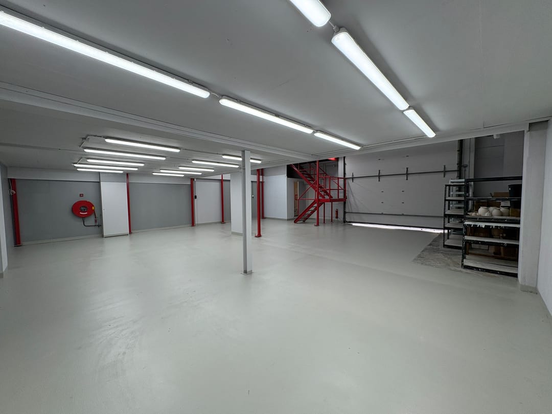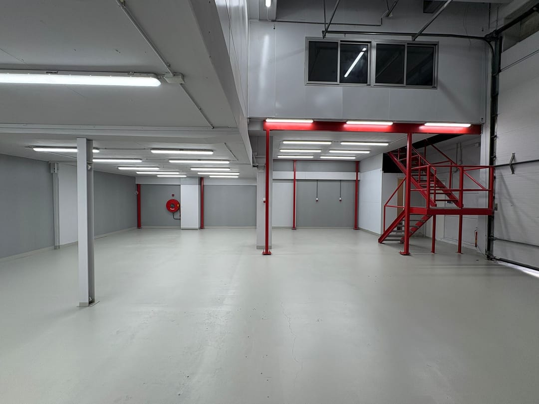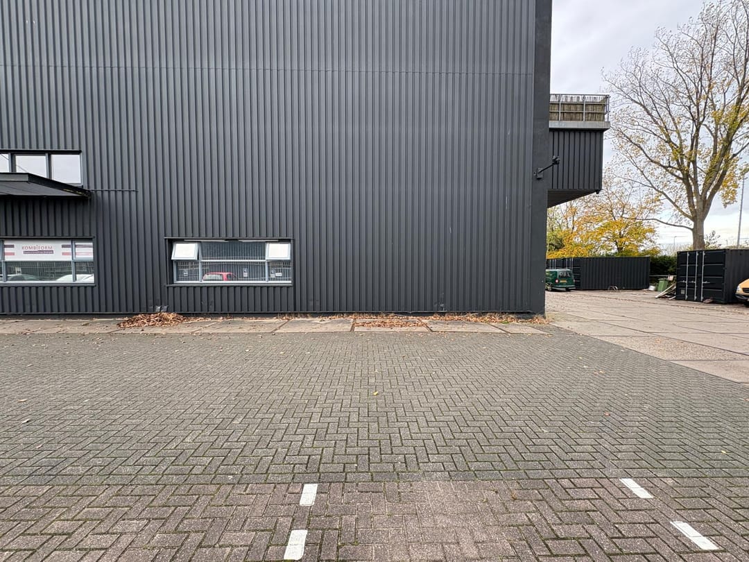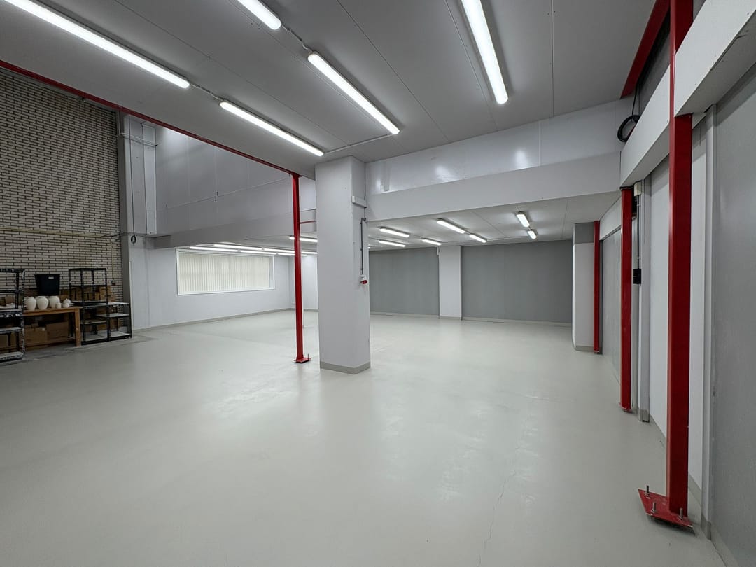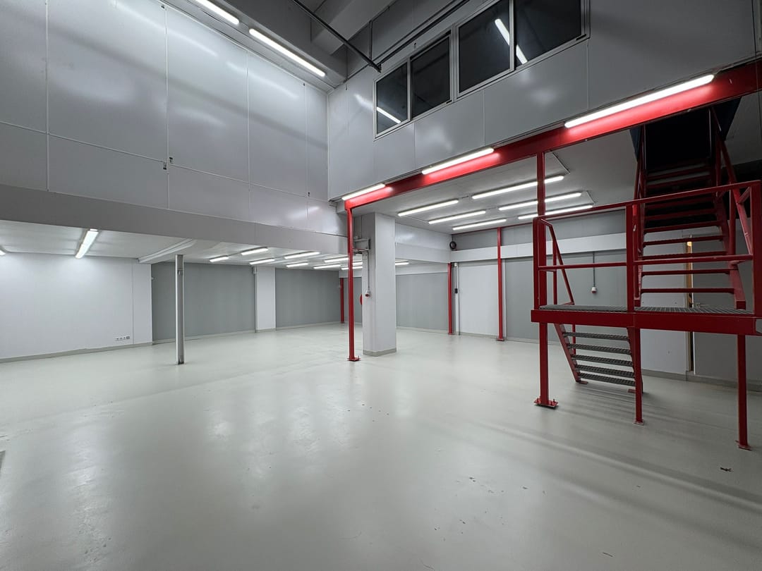 - De ruimte heeft gedeeltelijk een hoogte van ca. 6 meter en een bijzonder hoge overheaddeur.