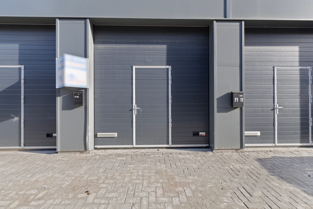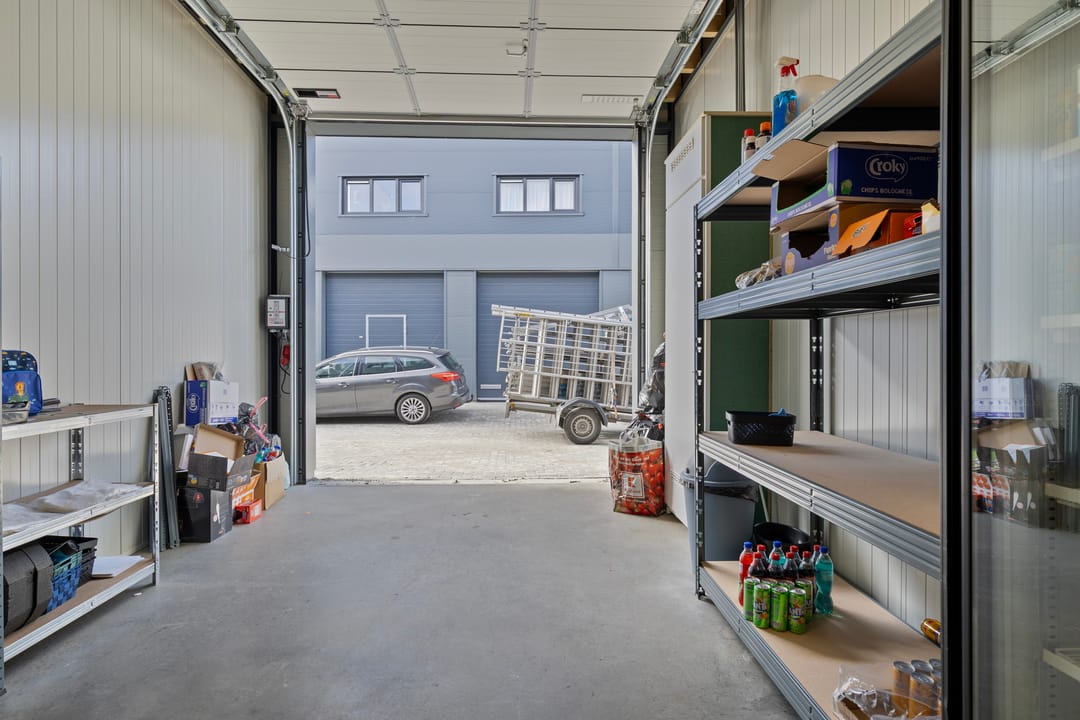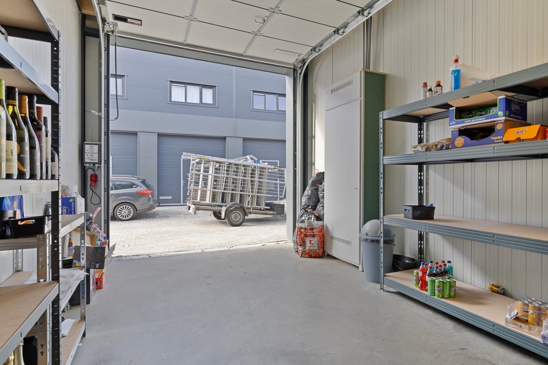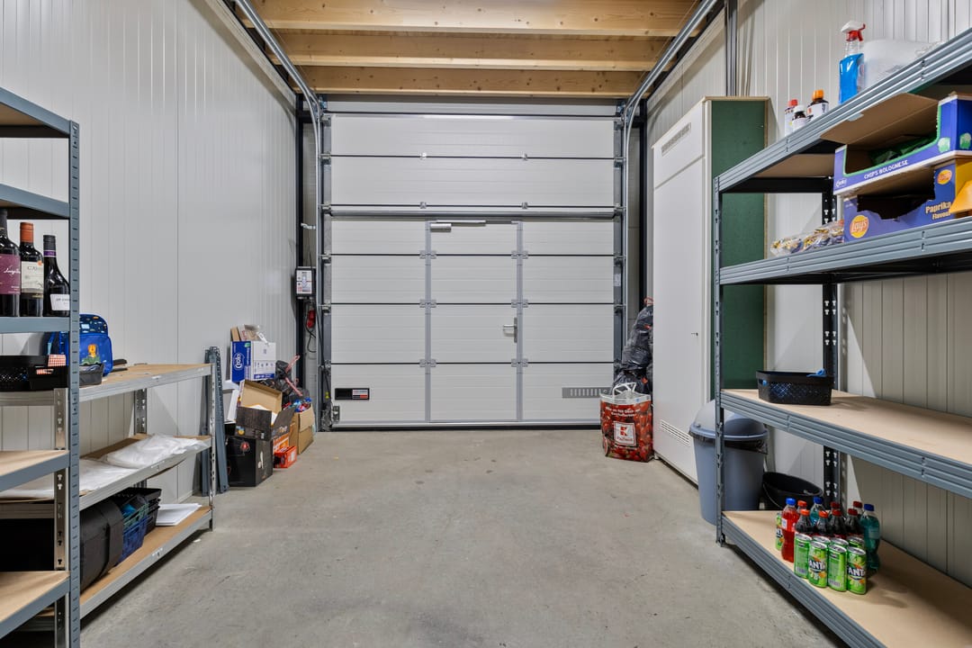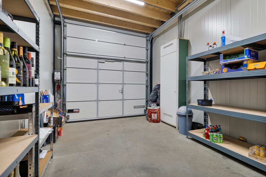 Groot elektrisch bedienbaar (met afstandsbediening) en (dubbelwandig) geïsoleerde overheaddeur van 3.00 breed en 3.20 hoog, met loopdeur;
