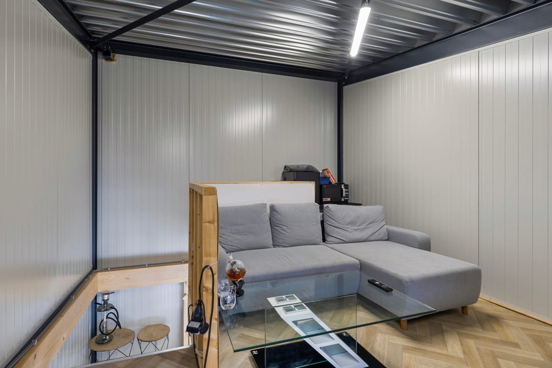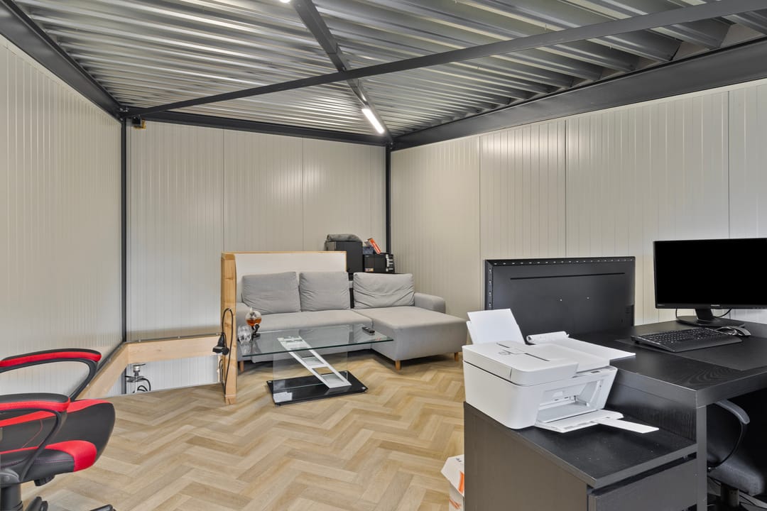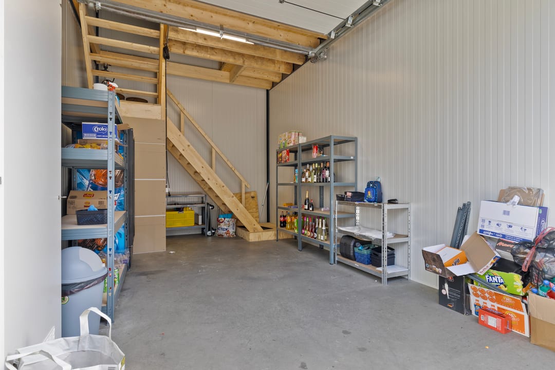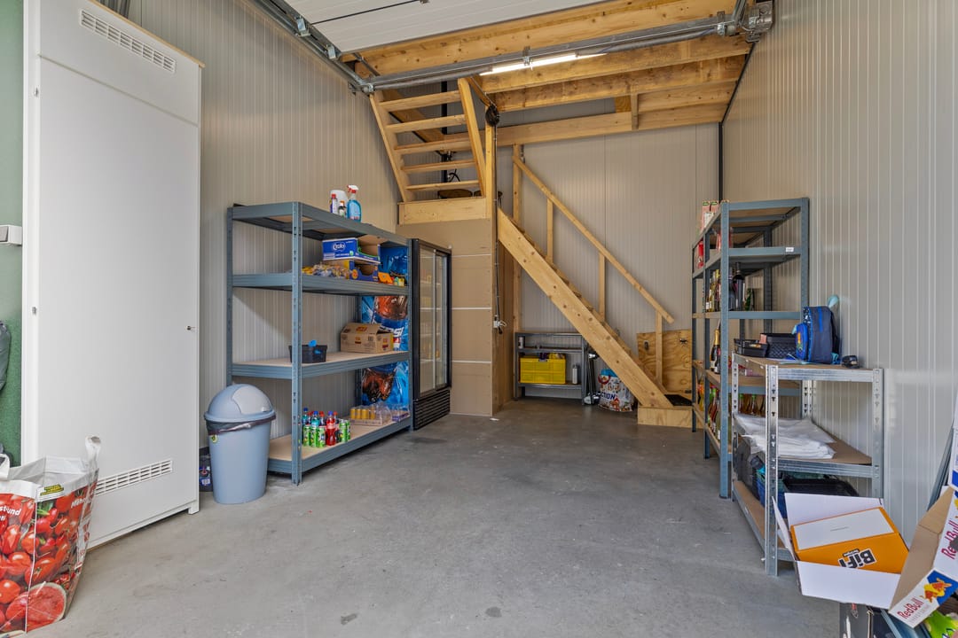 De begane grond heeft een opslagruimte van ca. 24 m². Er bevindt zich een trap naar de verdiepingsvloer (ca. 24 m²) voorzien van keurige visgraatvloer.