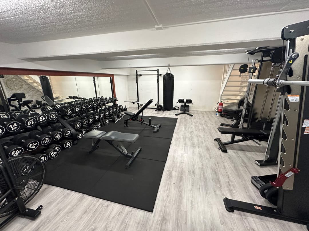 Oppervlakte: Begane grond ca. 195 m² (hoogte 2,75 m) en kelder ca. 110 m² (hoogte 2.03/2.25m). De kelder wordt bij de buurpanden veelal als praktijkruimte gebruikt (zie als voorbeeld de foto van de fitnessruimte in de veel kleinere kelder van nr. 66a). Tevens zou de kelder ruimte kunnen bieden aan bv. behandelkamers, kantoor, opslagruimte.