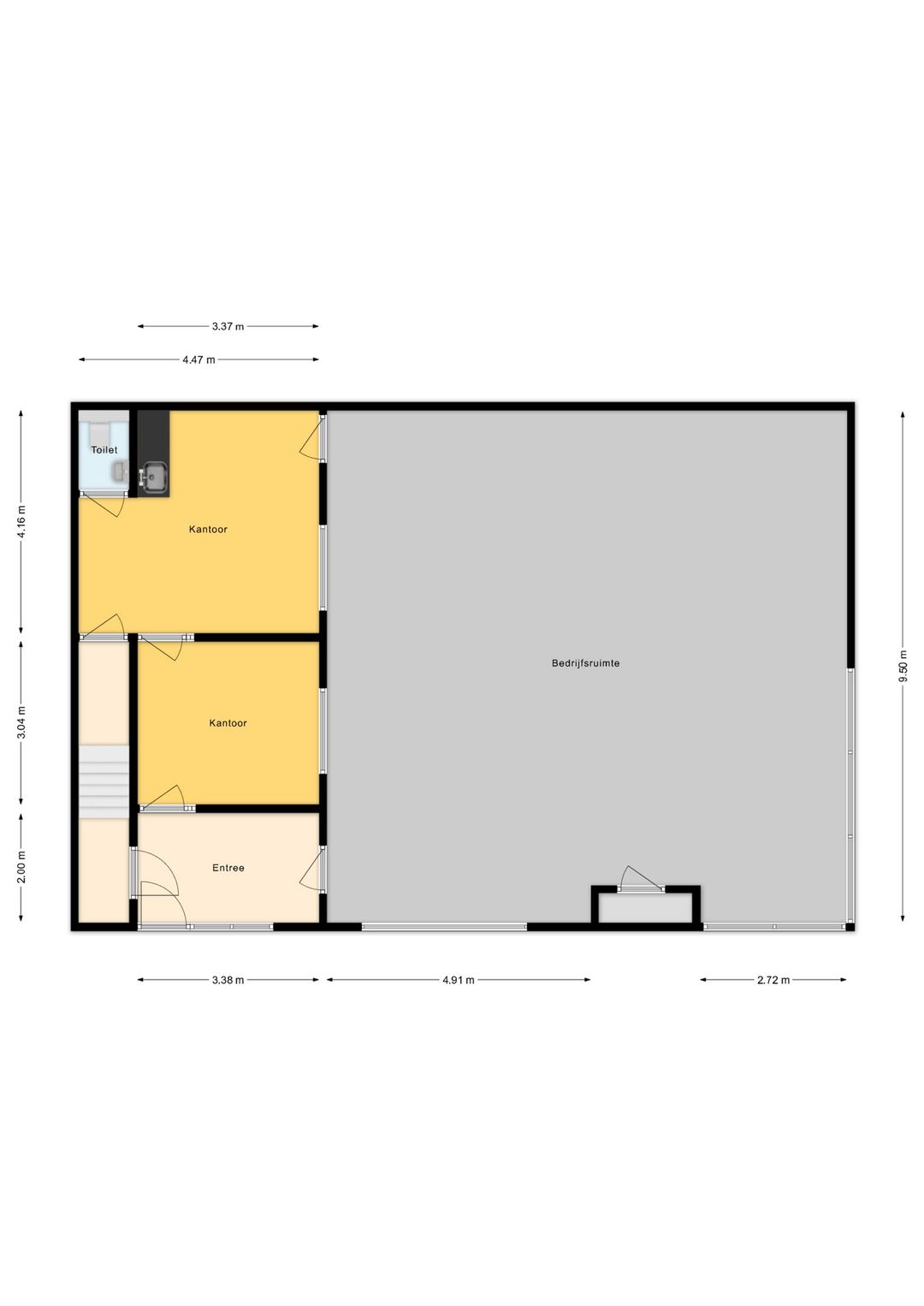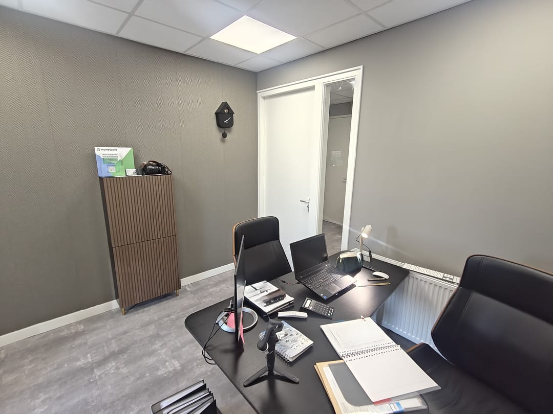 Entreedeur aan de zijkant van het object naar de gemeenschappelijke entreeruimte, vanuit hier de bedrijfsruimte met twee kantoren op de begane grond te bereiken. Vanuit de hal is met een trap de eerste verdieping met een ruime kantoorruimte en spreekkamer. te bereiken