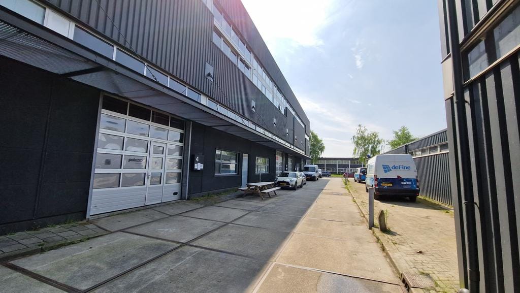 De begane grond omvat een bedrijfshal, werkruimte met een plafond op circa 5 meter hoogte. Er is toegang vanaf buiten door een overheaddeur (ca. 4 m hoogte) De achterste helft van de hal heeft een lager plafond door bovengelegen kantoren en opslag. Aan de voorzijde op de begane grond is een kantine met pantry. Op de verdieping zijn drie (kantoor)ruimtes en een ruime opslag aan de achterzijde.