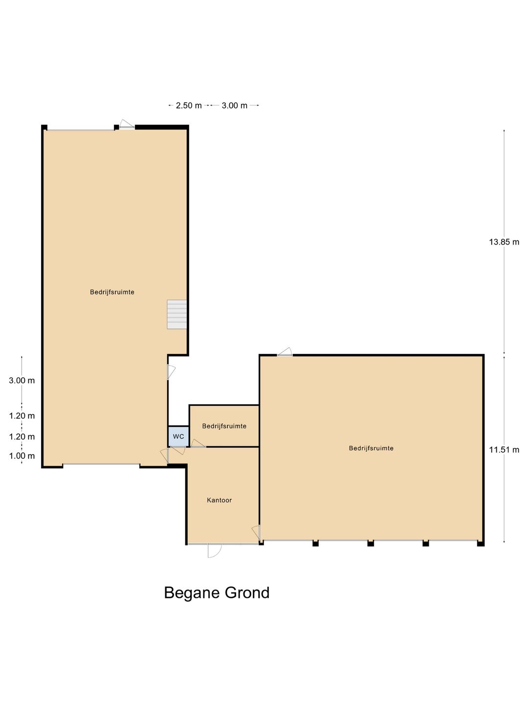 Werkplaats: ca. 155 m² (ca. 14 meter breed en ca. 11 meter lengte vrije hoogte ca. 5,4 m.)