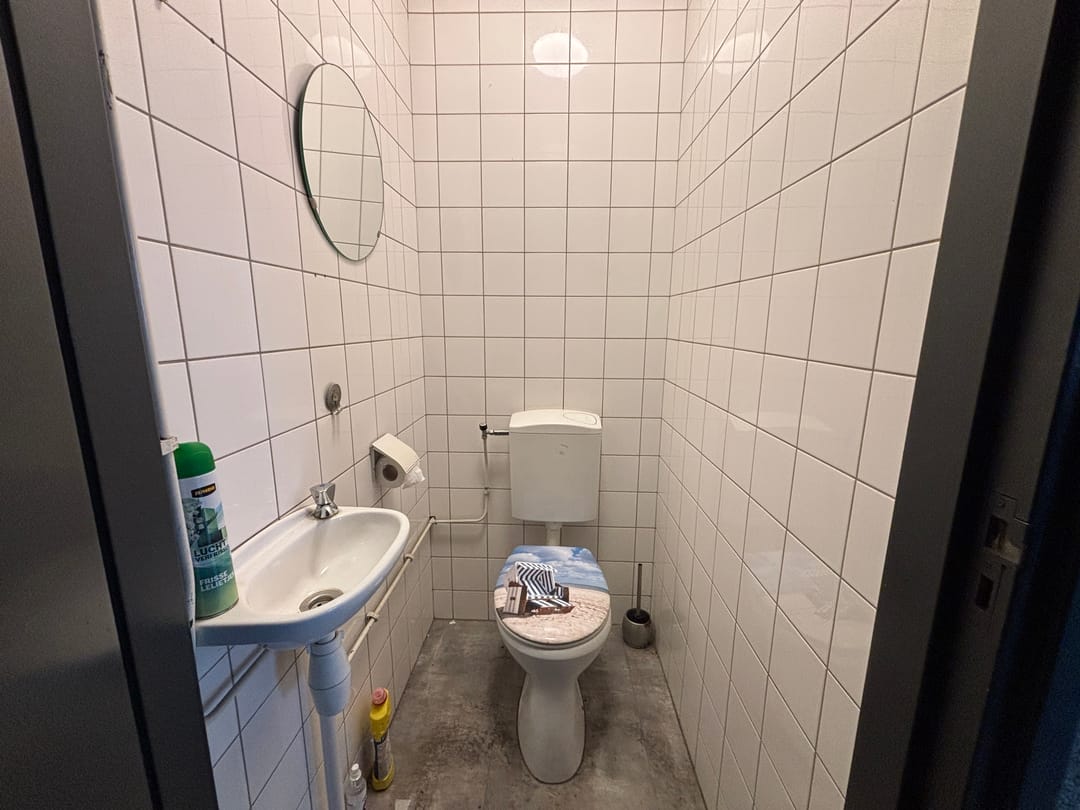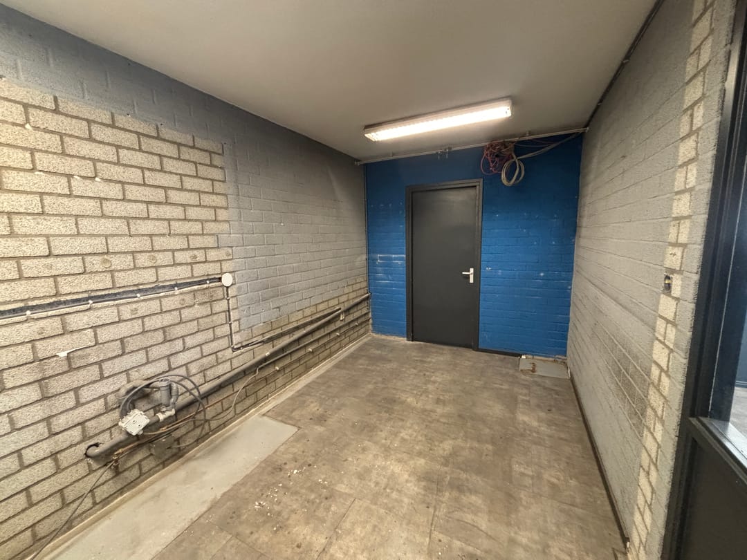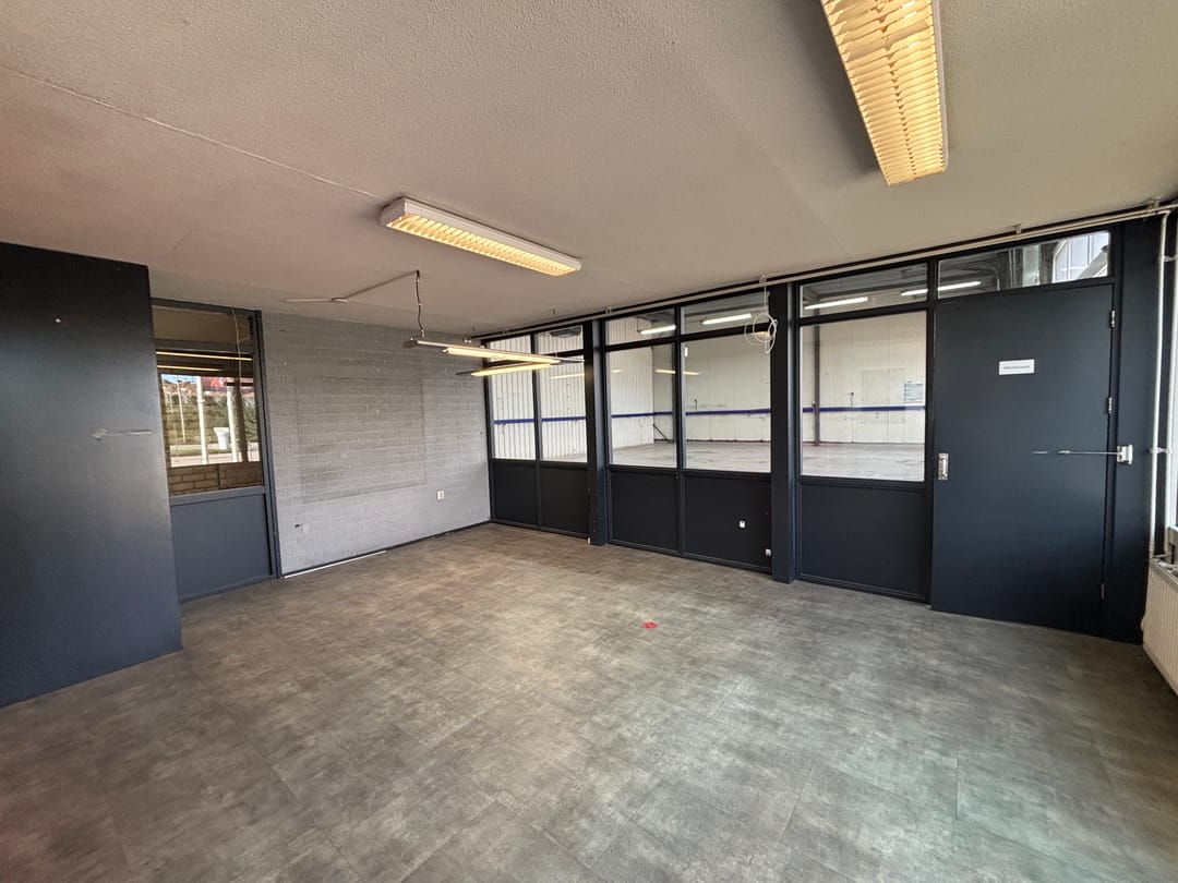Aangrenzend aan de werkplaats bevinden zich een kantoor met receptie, een toilet en een kantine.
