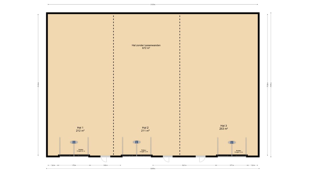 - 6 meter vrije hoogte hal