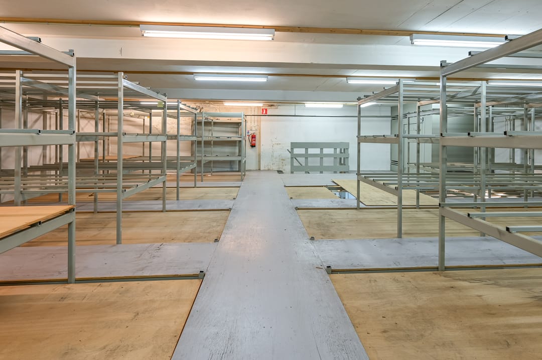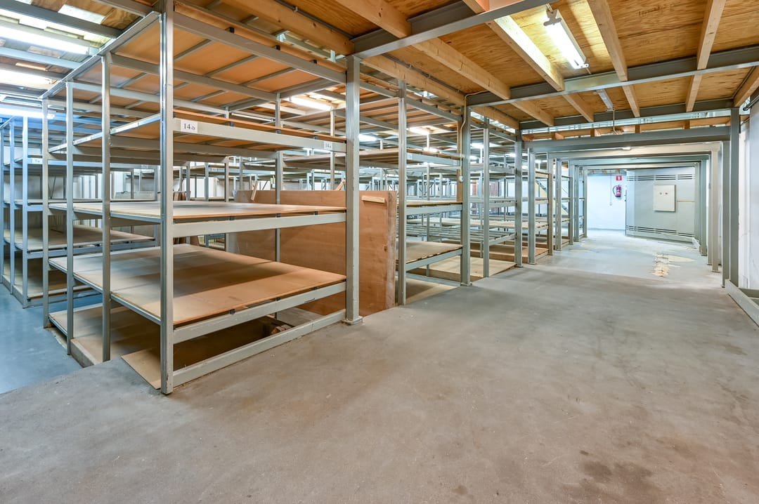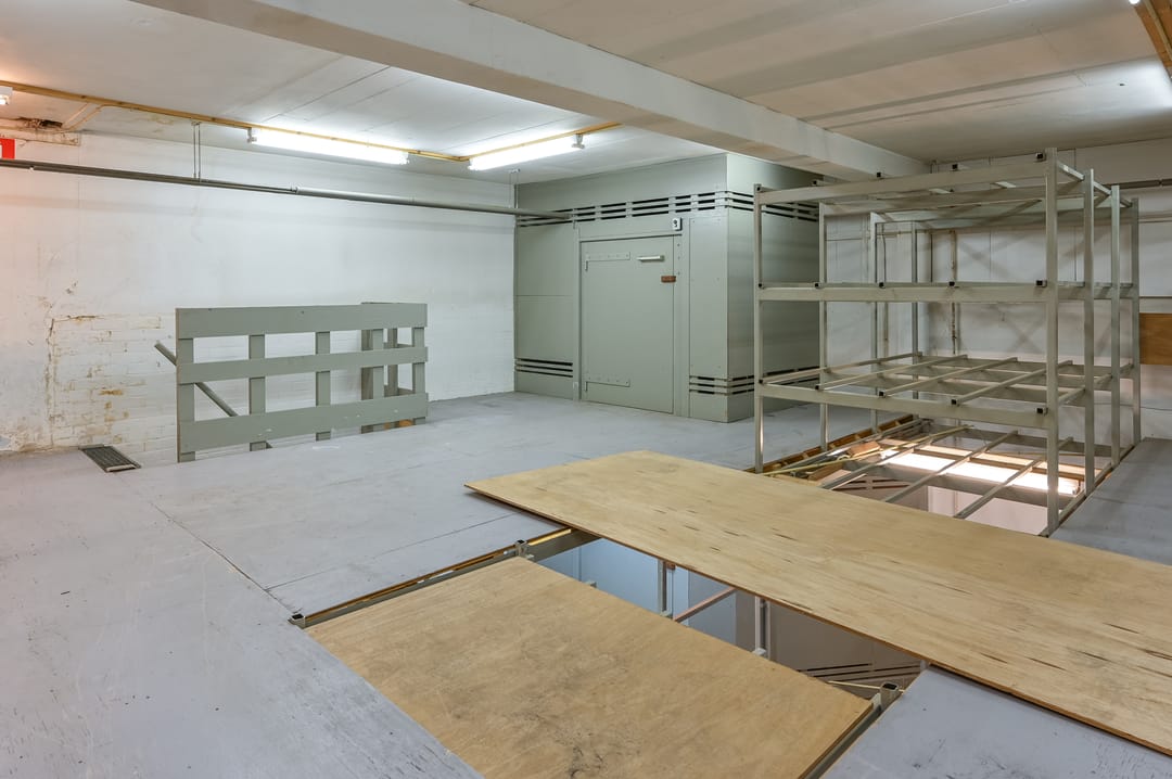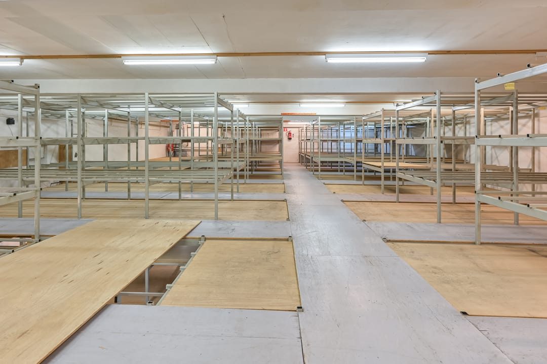 Ca. 200 m2 vloeroppervlakte parterre (ca. 2.48 meter hoog) plus een etage (middels stalen frame) van ca. 200 m2 (ca. tussen 1.88 en 2.10 meter hoog).