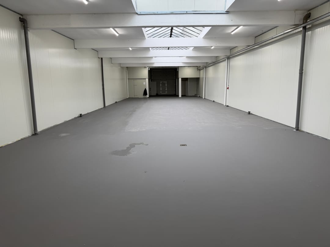 - Betonvloer met diverse afvoeren;