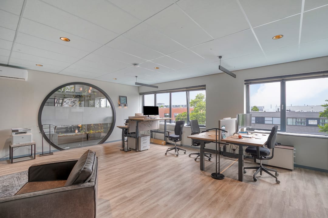 This prestigious and high-quality finished business complex, totaling 1,548 m², is spread over three floors and offers a combination of office, showroom, business, and warehouse space. The ground floor features a spacious warehouse floor, equipped with a large freight elevator providing direct access to the first floor. The first and second floors feature modern office and business spaces, a canteen with a fully equipped kitchen, and a generous roof terrace overlooking the Spaarne River. Various meeting facilities and additional outdoor space are also available, ideal for professional and representative business operations. The building is delivered vacant, is in excellent condition, and is ready for immediate occupancy. With an A++ energy label, it also offers a sustainable and future-proof work environment.