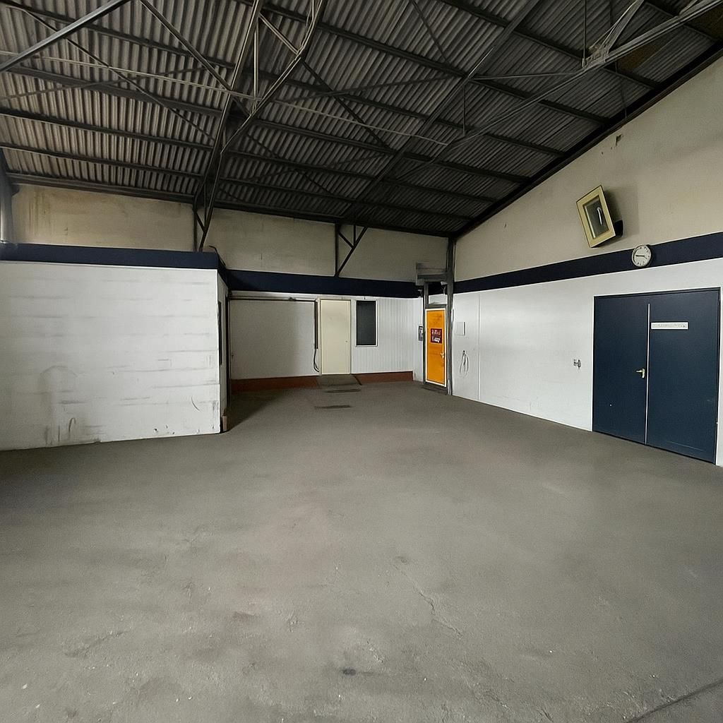 De bedrijfsruimte bestaat uit een royale hal met een vrije overspanning van ca. 15 m en een vloerbelasting tot ca. 1.500 kg/m². De ruimte beschikt over een elektrisch bedienbare overheaddeur, een aparte loopdeur en goede natuurlijke lichtinval dankzij lichtstraten en te openen ramen.