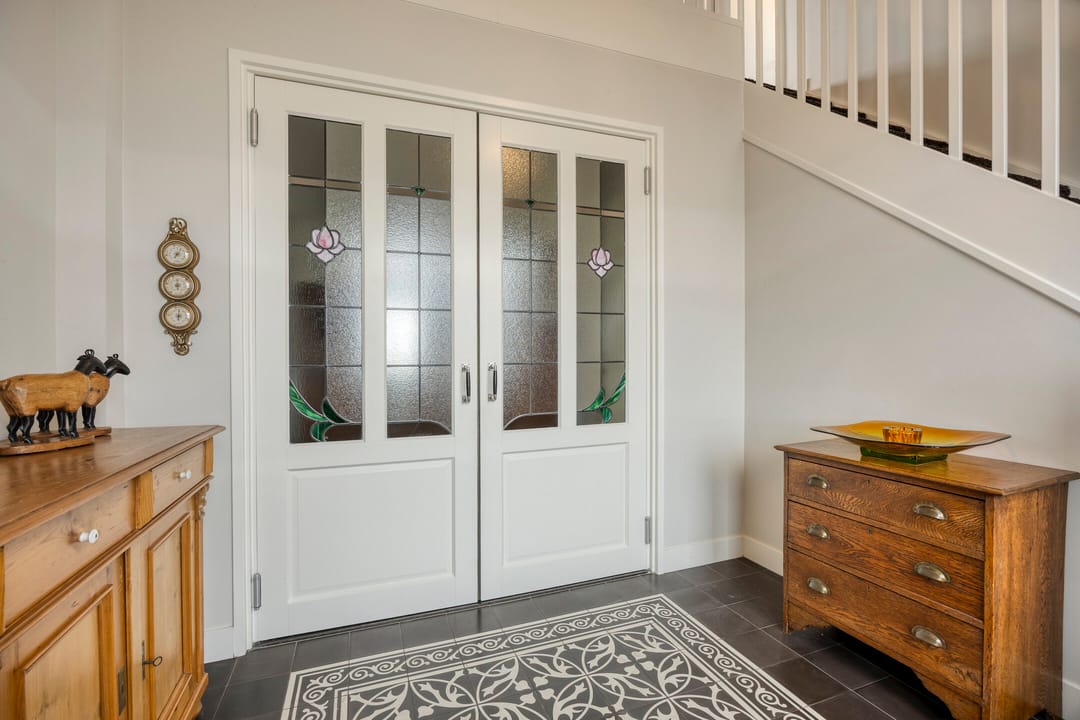 - overal hardhouten binnendeurkozijnen en stompe deuren;