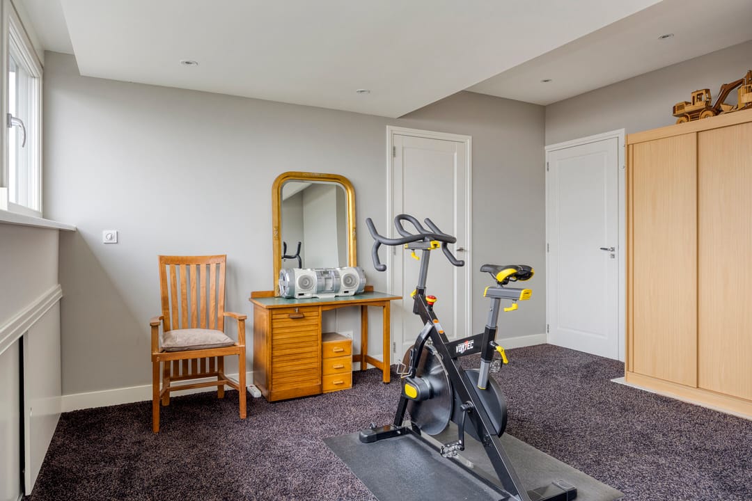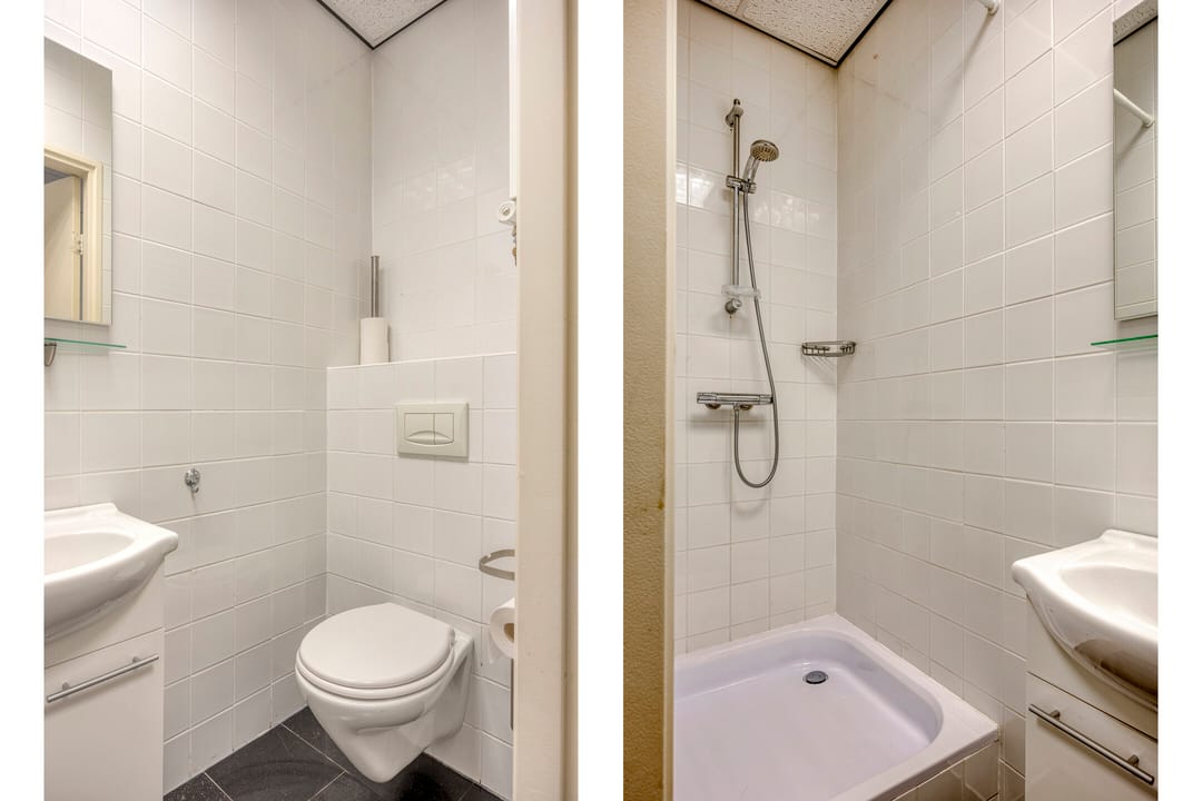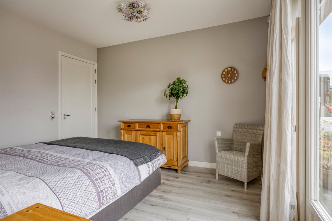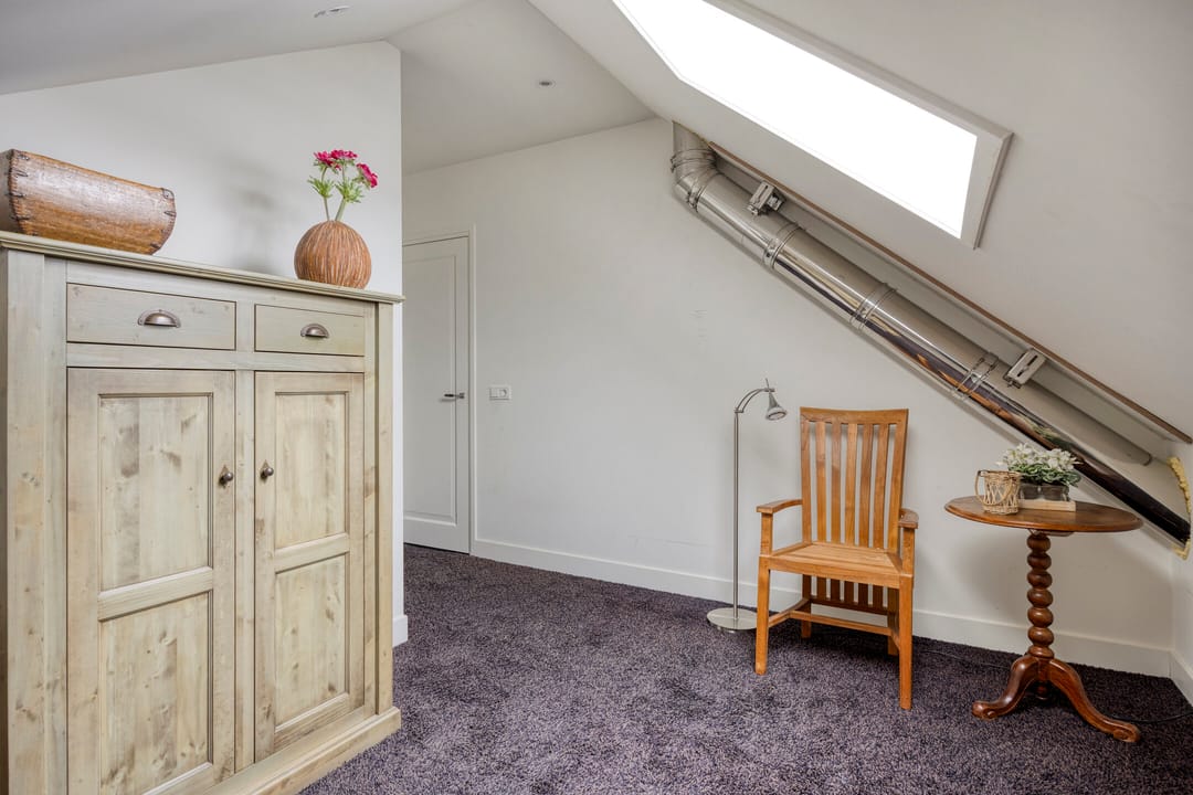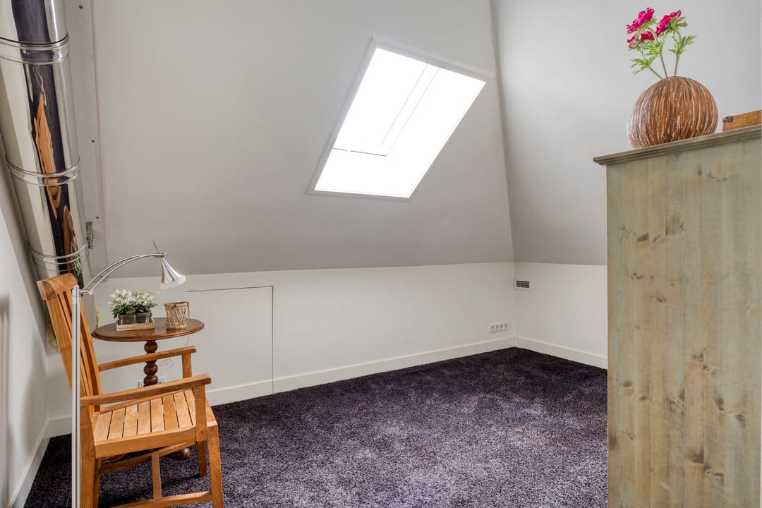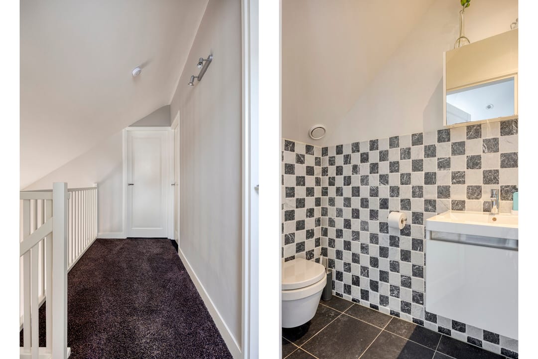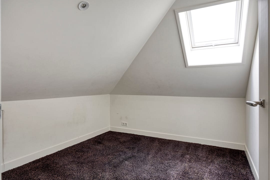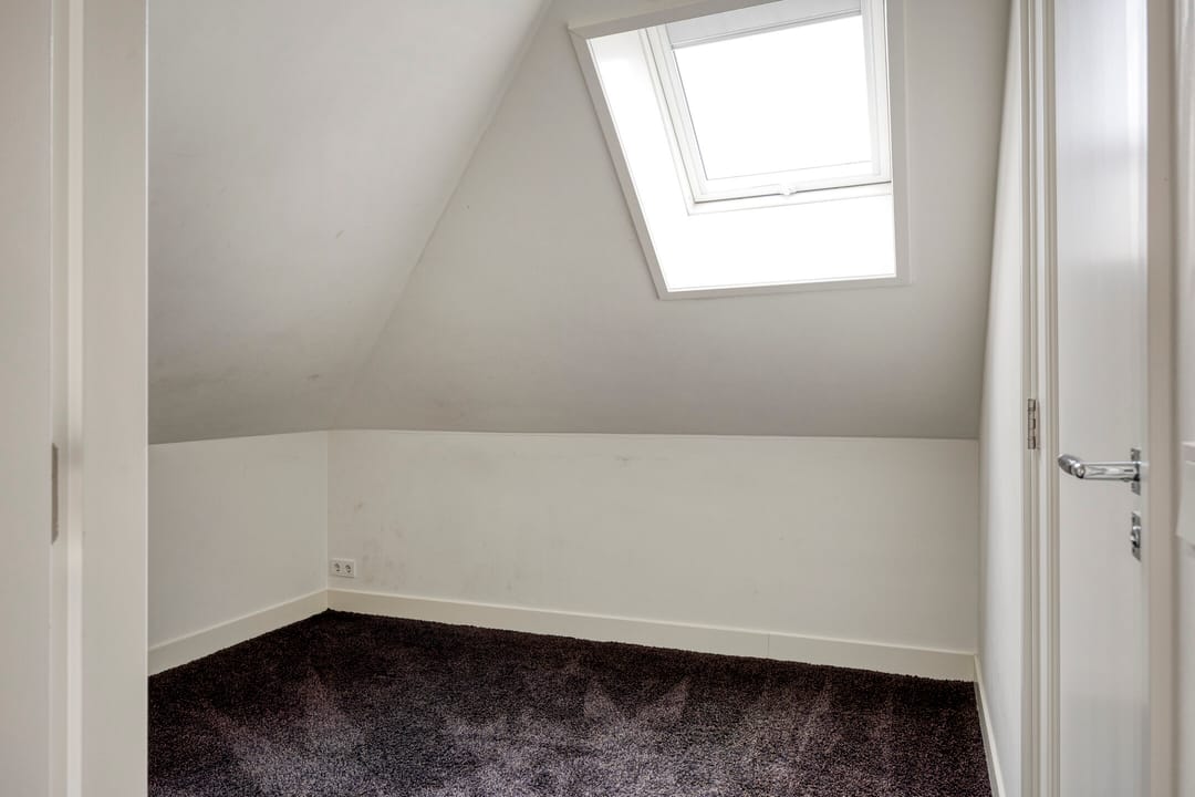 Overloop, zijkamertje met daktuimelraam, achterslaapkamer met dakkapel met inloop garderoberuimte met toegang naar betegeld toilet met wandcloset en fonteintje in meubel. Twee zijkamers met daktuimelraam. Overal stucwerk wand en plafondafwerking en inbouwspots. Een van de slaapkamers is tevens voorzien van de ingebouwde airco.