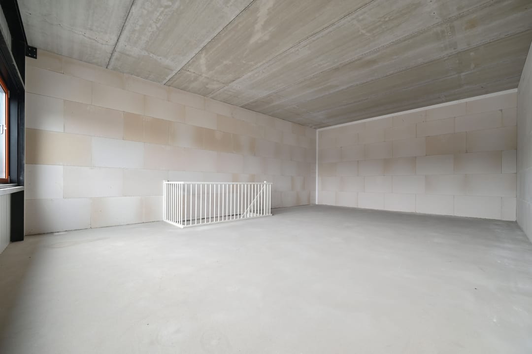 - De constructieve betonnen verdiepingsvloer is met een cementdekvloer afgewerkt.
