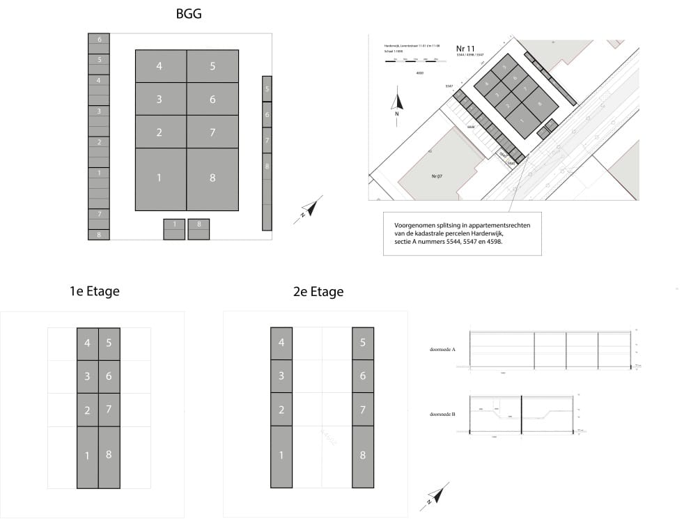 Bij unit 11-8 behoren 6 eigen parkeerplaatsen, bij unit 11-7 behoren 3 eigen parkeerplaatsen.