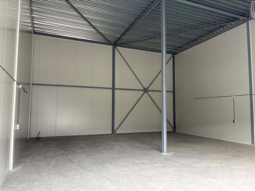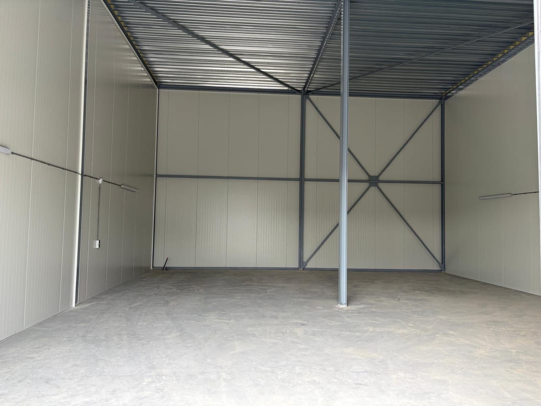 - Wanden en tussenwanden 60 mm dikke sandwichpanelen in de kleur RAL 9007 (RC waarde 2,82 m2/Kw)