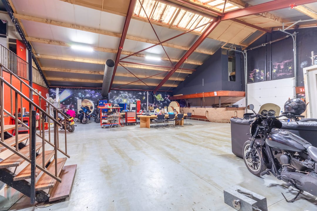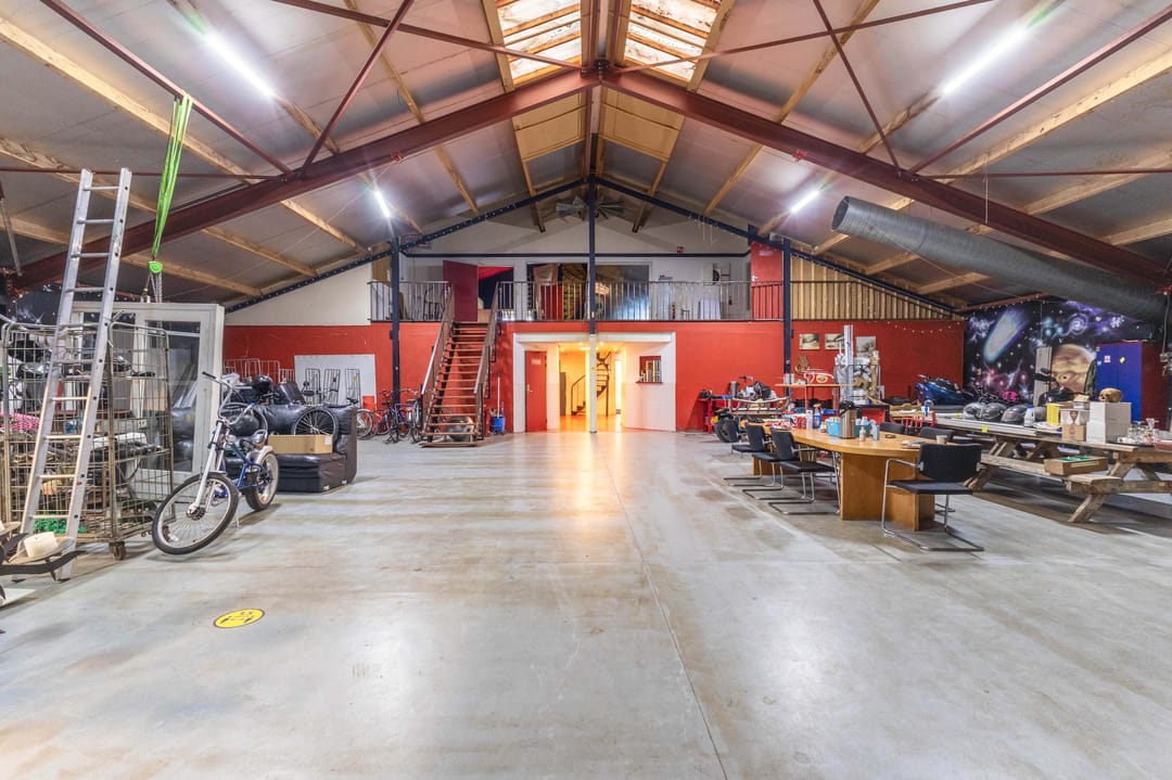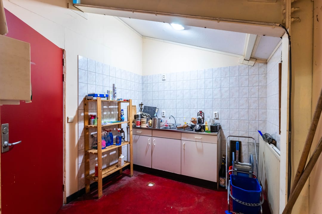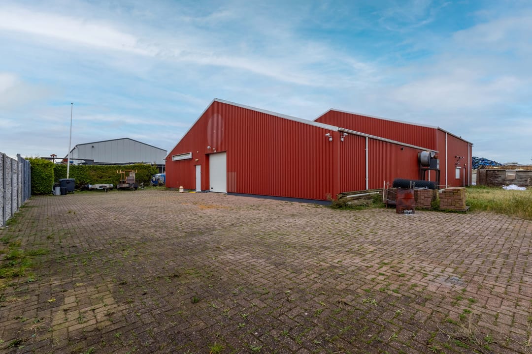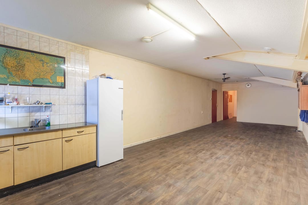 Loods ca. 285m2 met elektrische sectionaaldeur van 3m1 x 3m1, toiletruimte, keuken, twee maal een kantoorruimte van ca 50m2 en drie kamers van respectievelijk 10m2 en een badkamer.