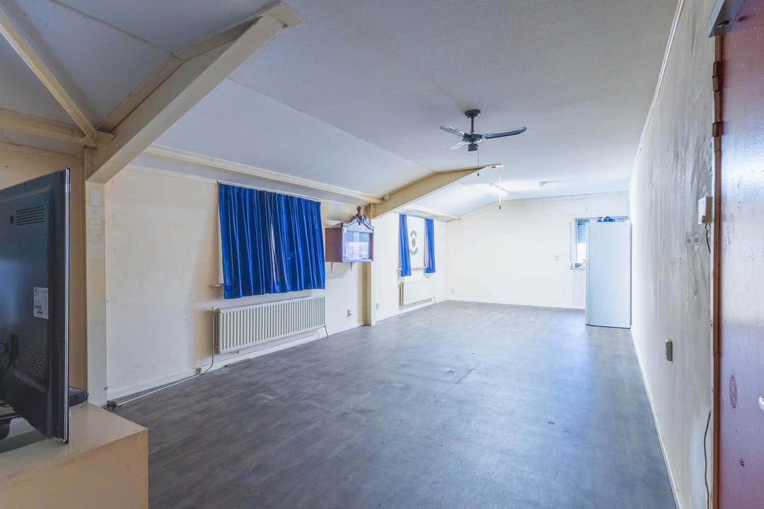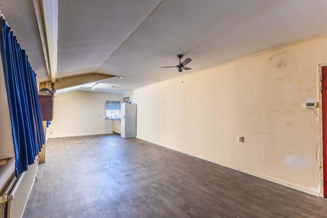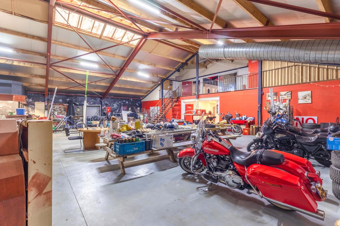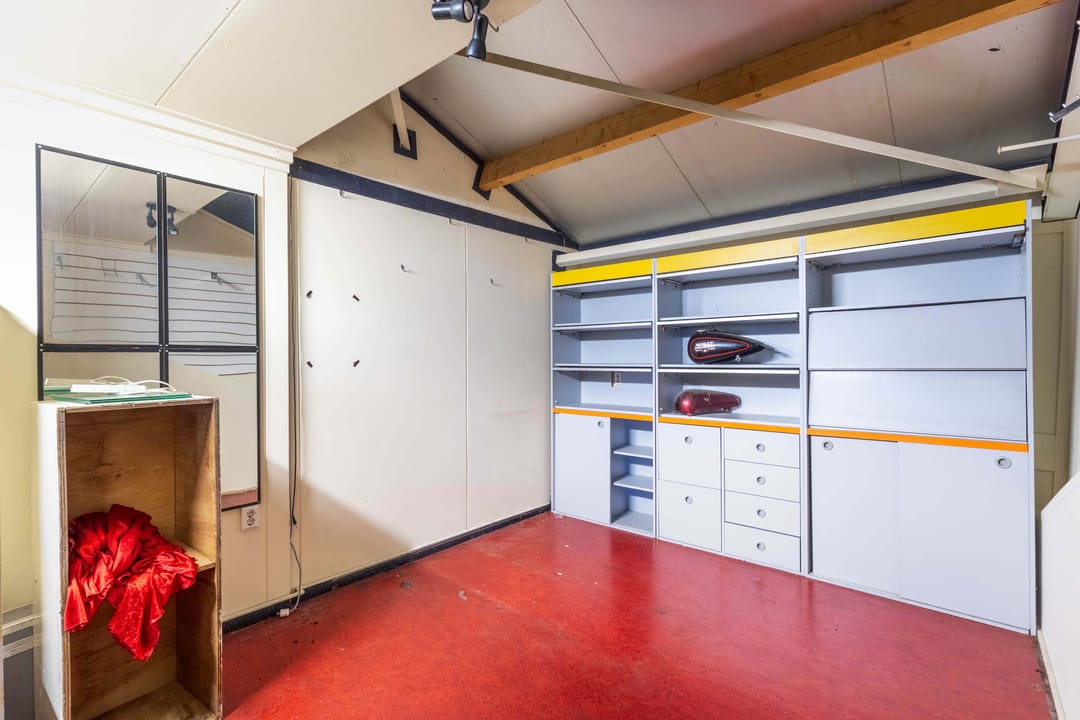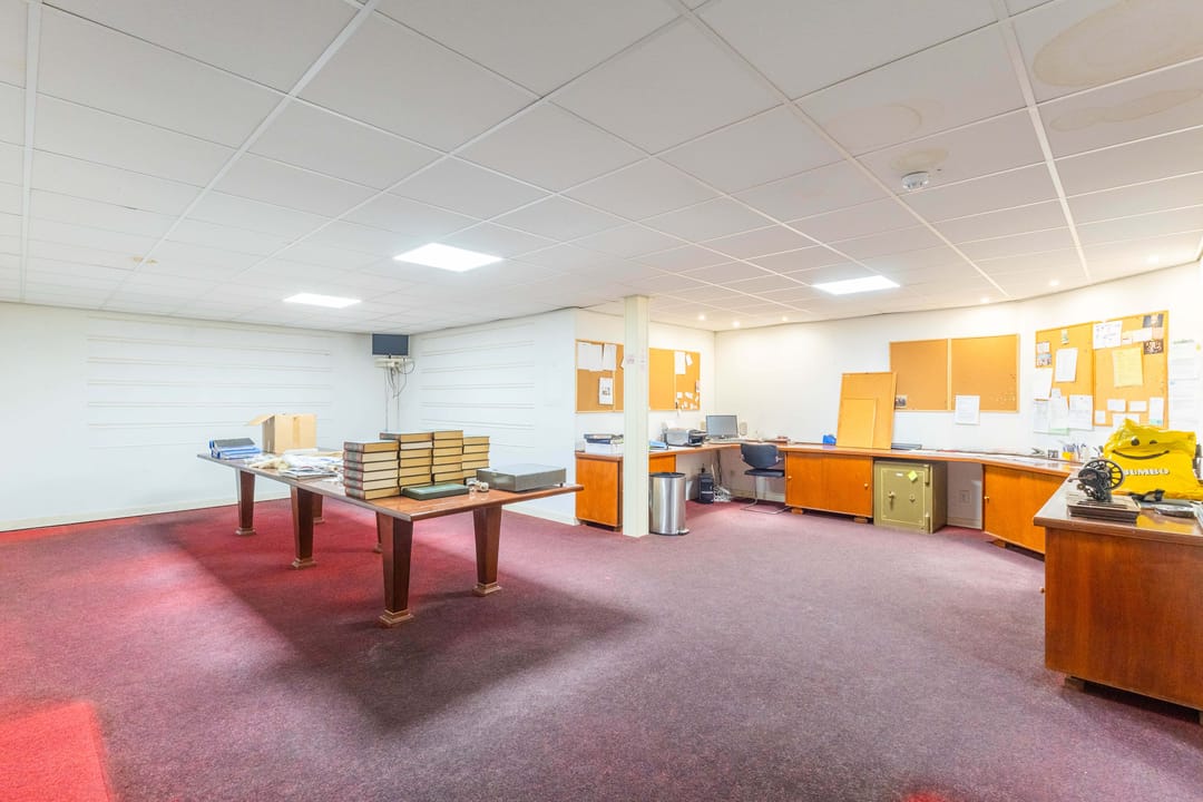 Loods ca. 285m2 met elektrische sectionaaldeur van 3m1 x 3m1, toiletruimte, keuken, twee maal een kantoorruimte van ca 50m2 en drie kamers van respectievelijk 10m2 en een badkamer.