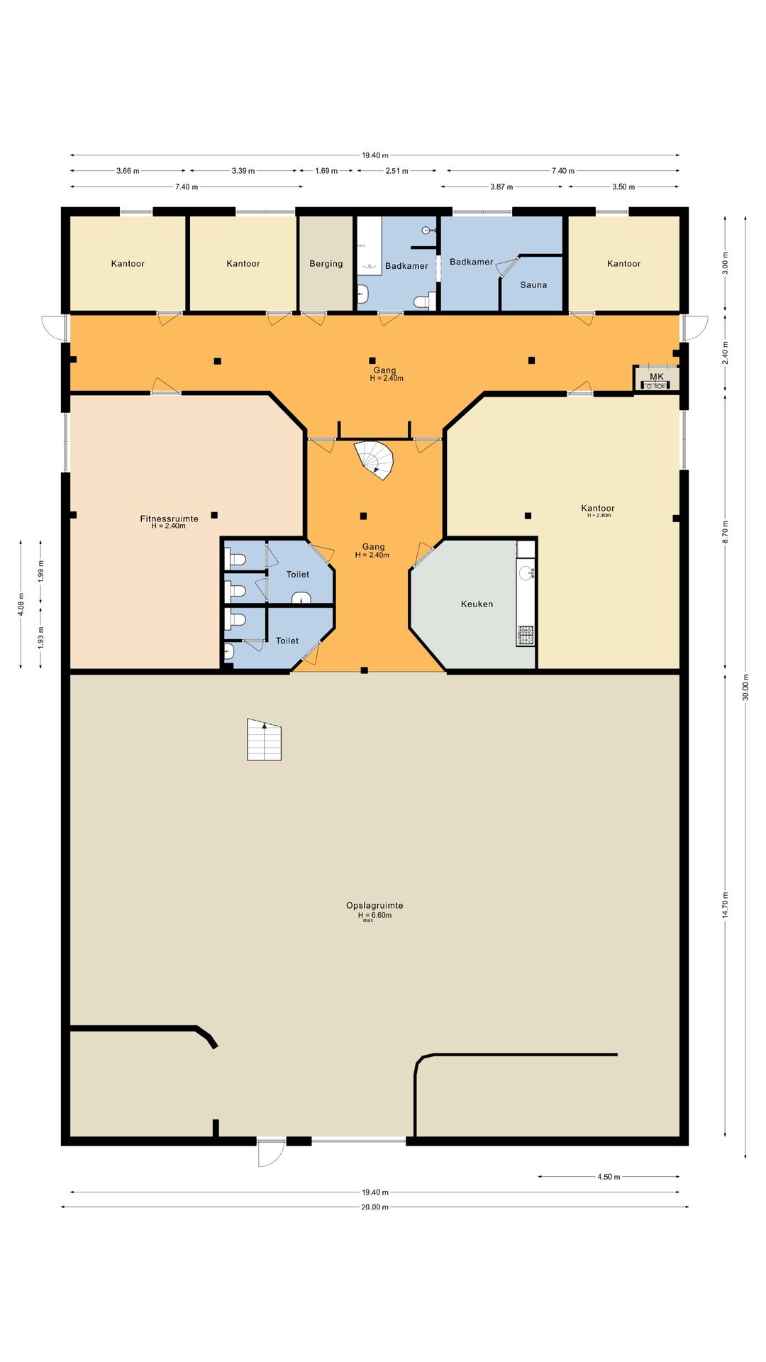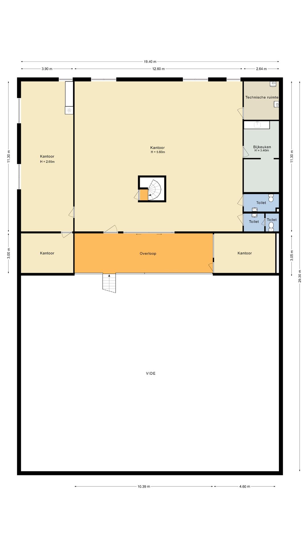 Verdieping: balkon ca. 35m2, kantoor/kantineruimte ca. 44m2 met keukenopstelling, opslagruimte of potentieel kantoorruimte ca. 142m2 ,technische ruimte, berging en dubbele toiletruimte.