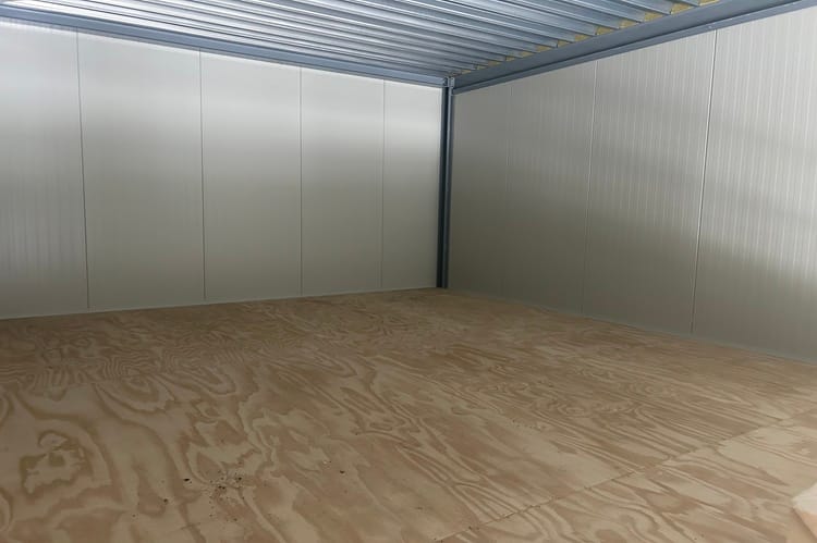 - Wanden en tussenwanden 60 mm dikke sandwichpanelen in de kleur RAL 9007 (RC waarde 2,82 m2/Kw)