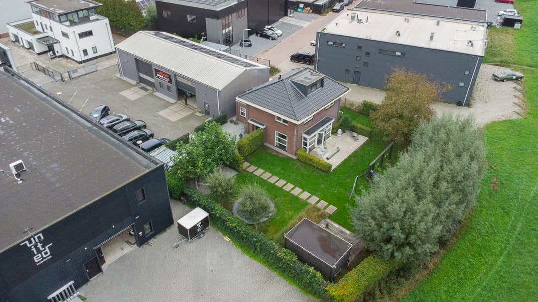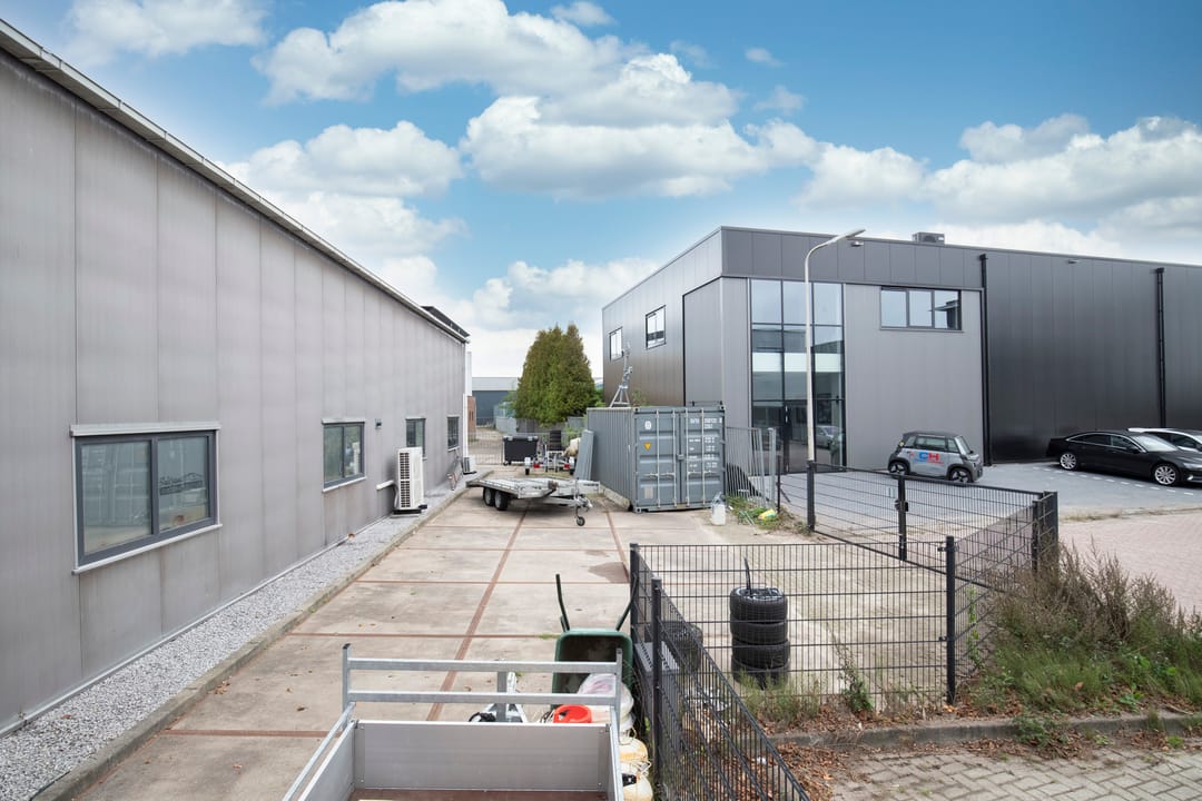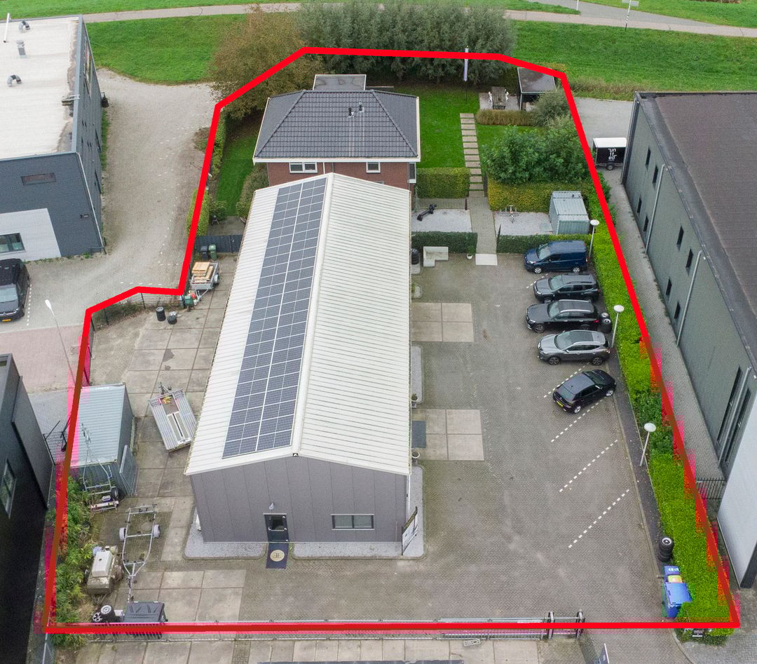 Het terrein rondom de bedrijfshal is volledig omheind en toegankelijk via een automatische rolpoort aan de voorzijde. Aan de voorkant is ruimte voor circa 10 voertuigen, en achter het gebouw is extra parkeerruimte beschikbaar. Met een extra overheaddeur aan de achterzijde kan eenvoudig een doorrijmogelijkheid worden gecreëerd.