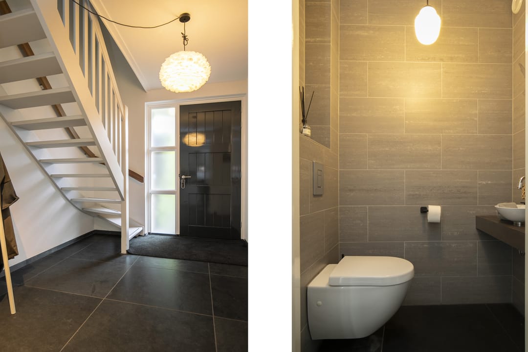 De woning is tot in detail afgewerkt en volledig instapklaar. Bij binnenkomst kom je in de hal met de trapopgang naar de eerste verdieping, de meterkast en een modern toilet.
