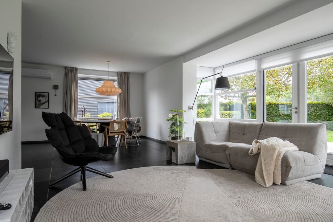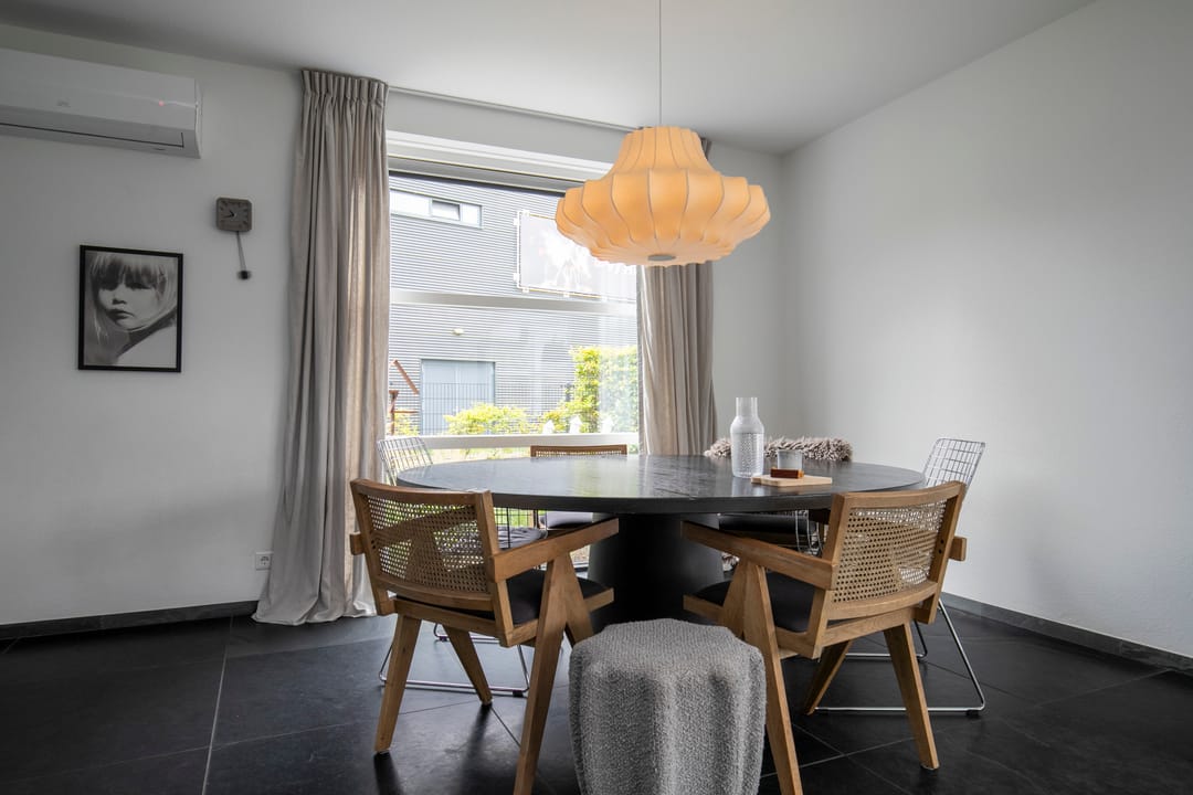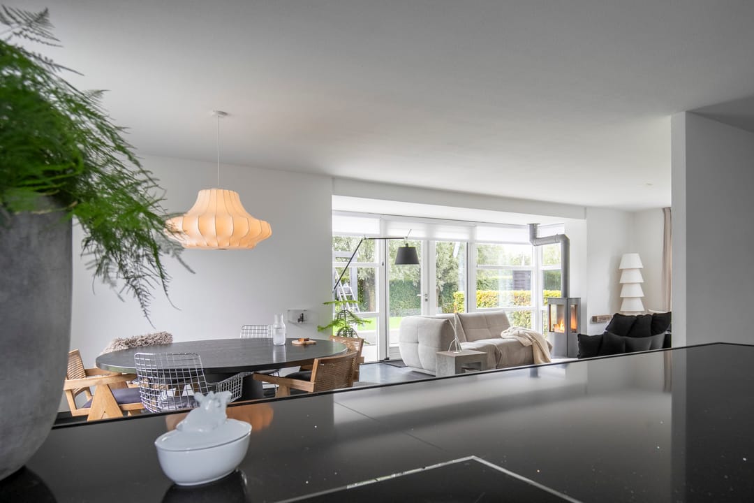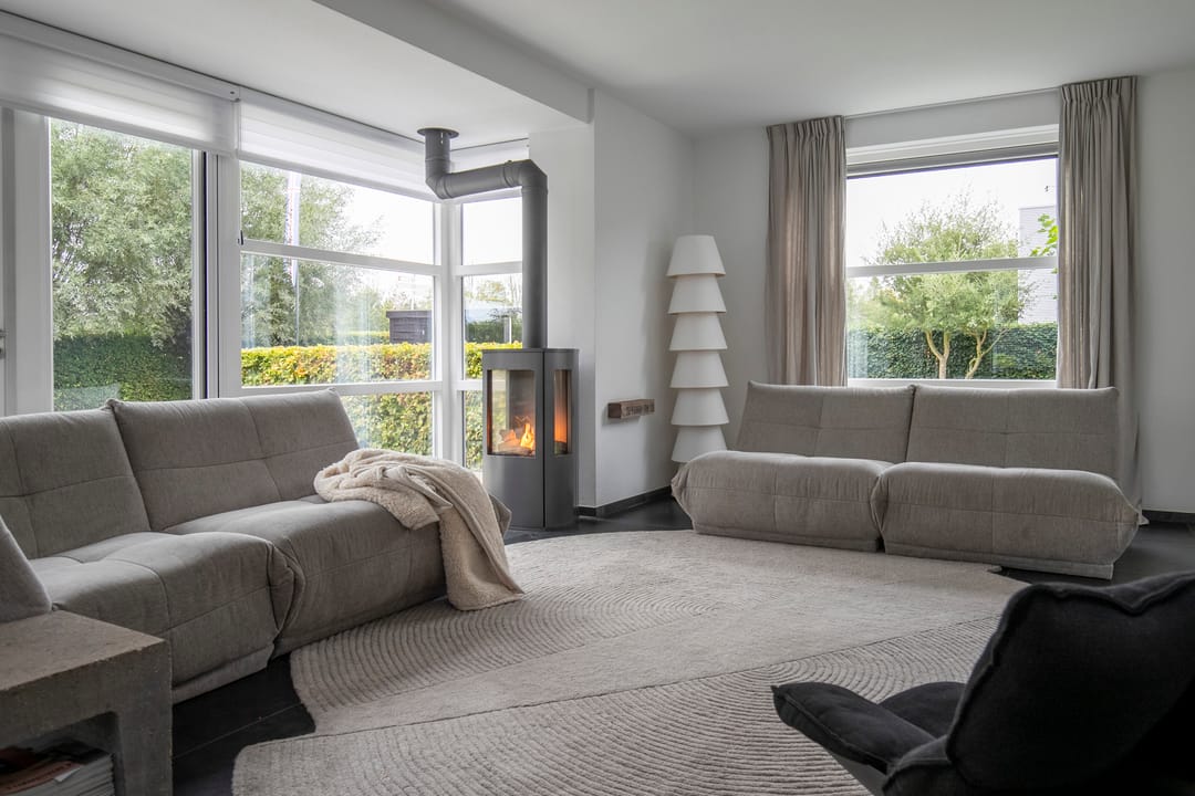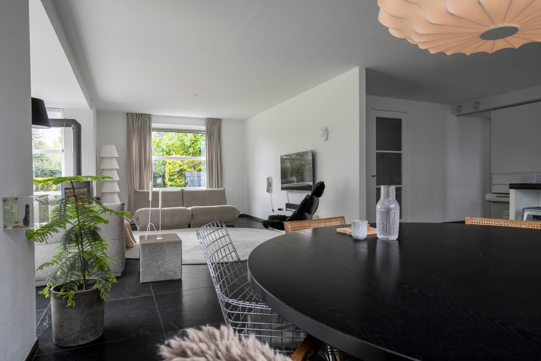 Grenzend aan de keuken ligt de eetkamer, met voldoende plek voor een royale eettafel. Een fijne plek om gezellig te borrelen of uitgebreid te dineren met vrienden en familie. De woonkamer is een heerlijke lichte ruimte, dankzij de grote pui met openslaande deuren naar de tuin. Hier is alle ruimte om te loungen of te ontspannen bij de sfeervolle gashaard. De gehele begane grond is voorzien van vloerverwarming, wat zorgt voor extra comfort en een aangenaam binnenklimaat.