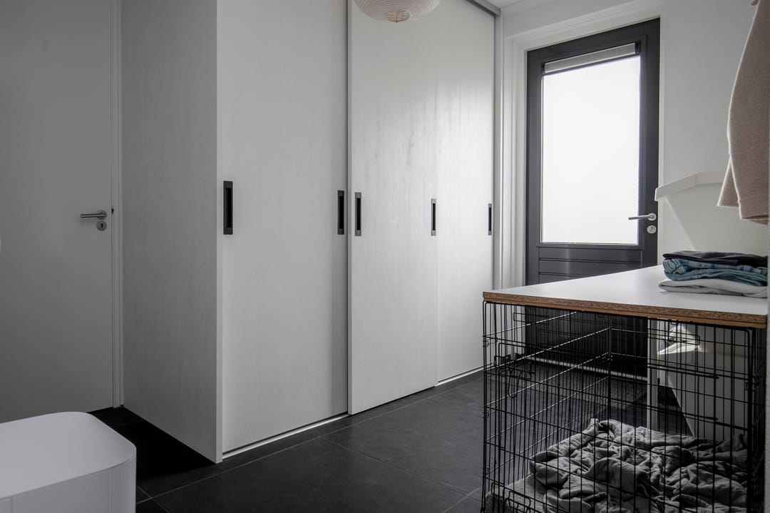 Via de keuken is de bijkeuken bereikbaar, met vaste kasten en aansluitingen voor wasmachine en droger. Vanuit de bijkeuken is bovendien een slaapkamer op de begane grond toegankelijk. Ideaal als logeerkamer, werkkamer of hobbyruimte.