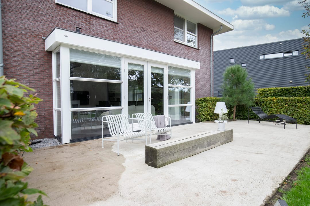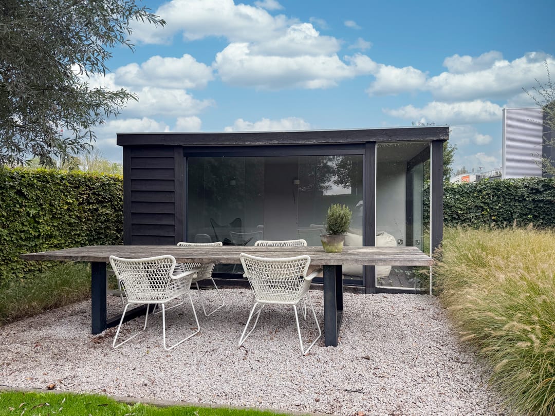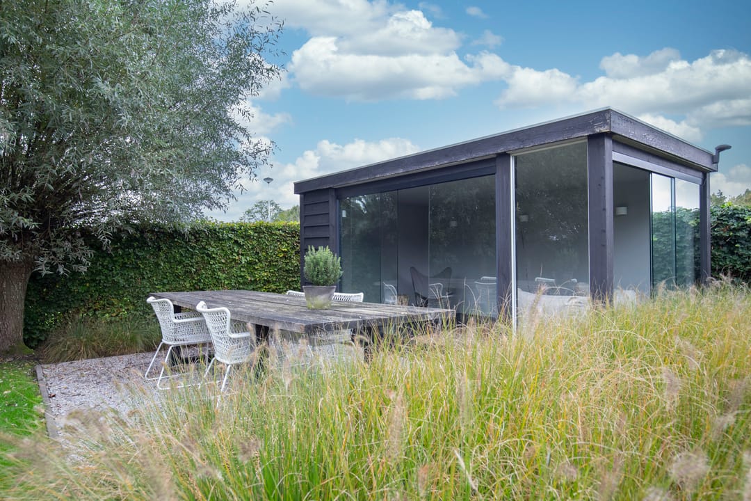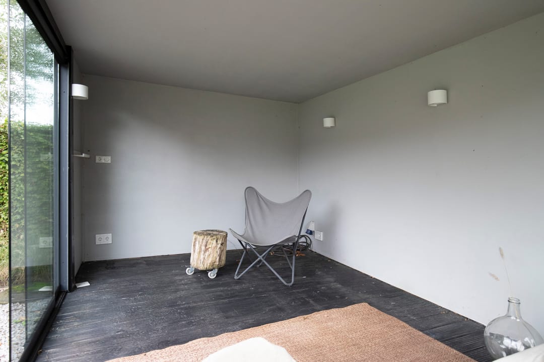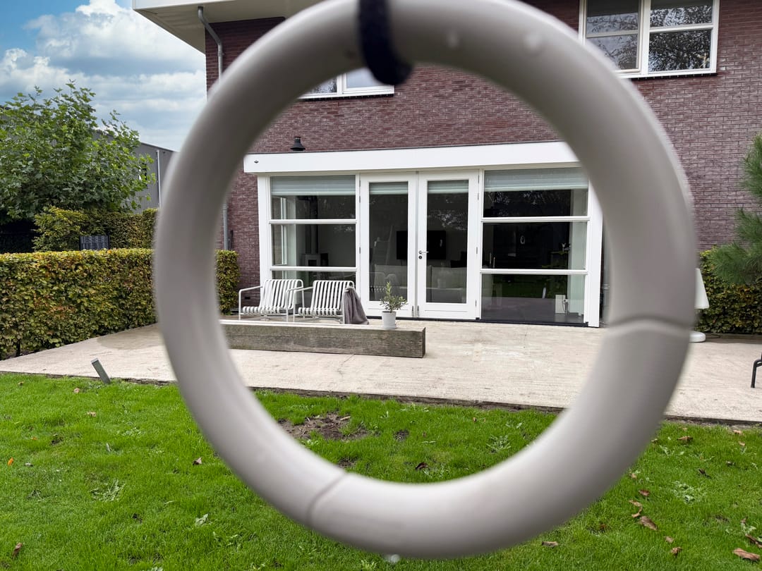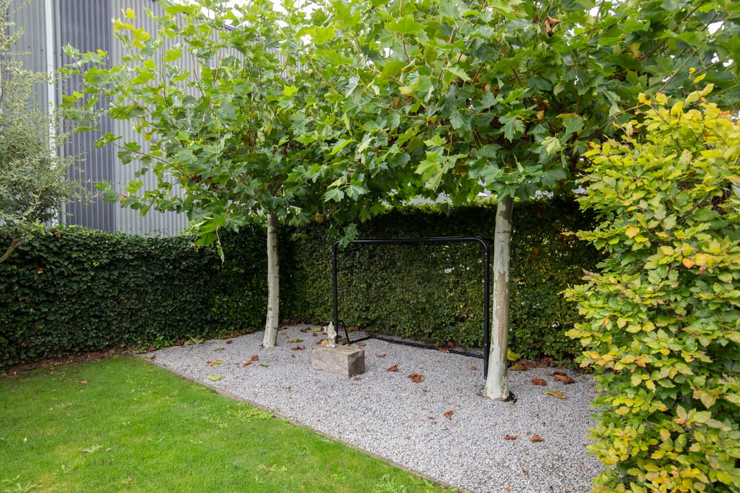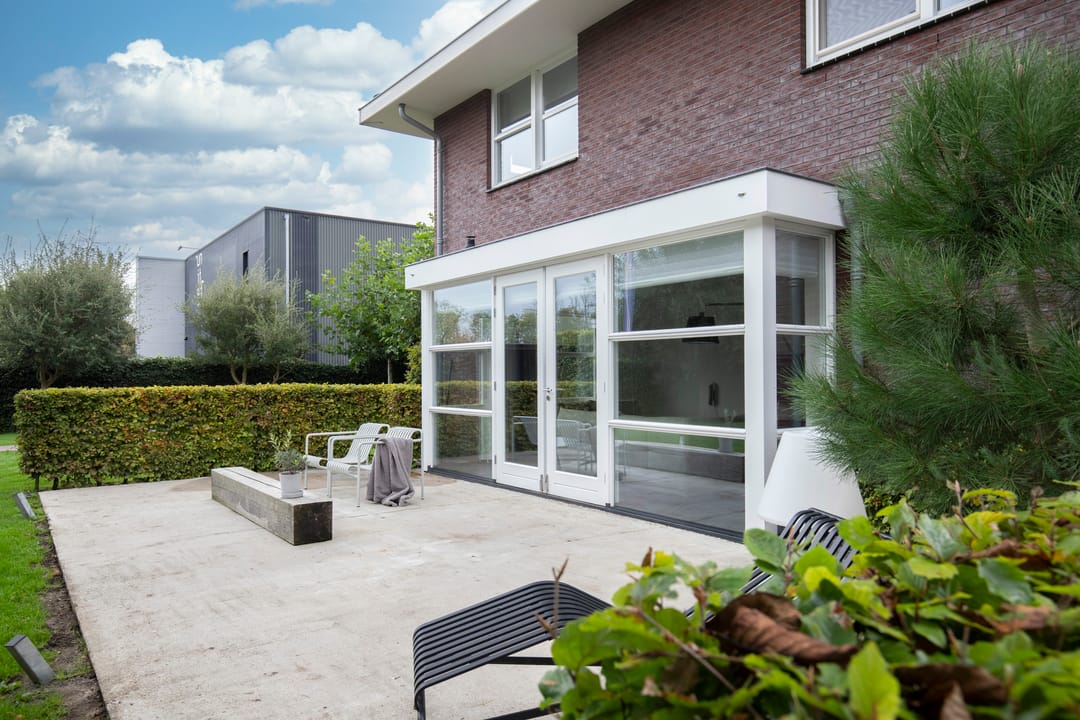 De tuin is met zorg aangelegd en vormt een heerlijke plek om te ontspannen. Er zijn meerdere terrassen, een groot gazon, een trampoline en een luxe tuinkamer met glazen wanden, perfect voor zomeravonden. Dankzij de groene erfafscheiding geniet je hier van optimale privacy en een vrij uitzicht over het aangrenzende landschap.