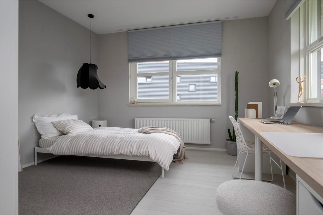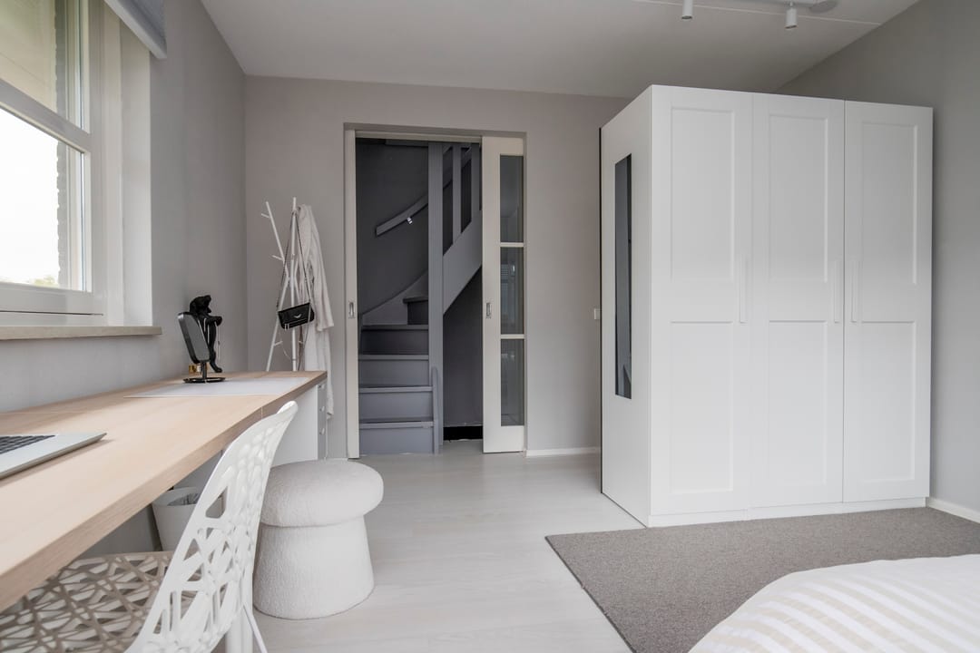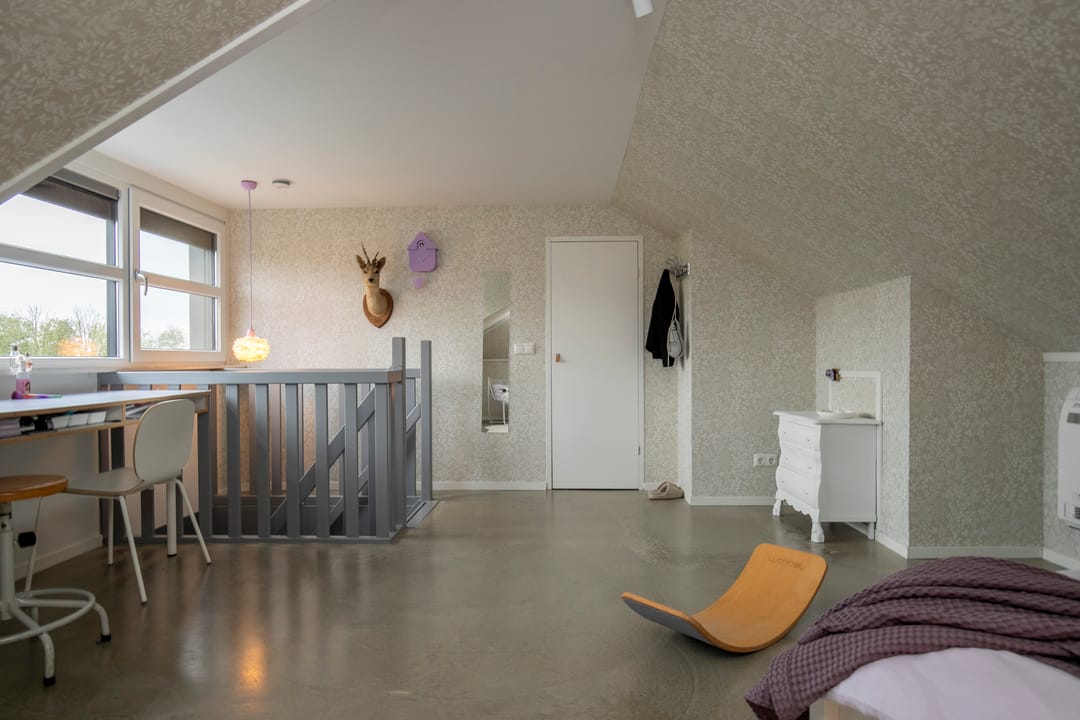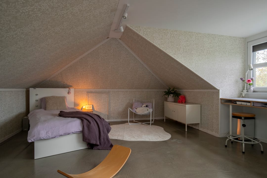Op de tweede verdieping is een sfeervolle vierde slaapkamer gerealiseerd. Dankzij de dakkapel (geplaatst in 2020) is hier veel extra leefruimte en licht ontstaan, waardoor de kamer een volwaardige verdieping vormt. De ruimte is keurig afgewerkt en voorzien van een vaste kast waarin de cv-installatie is geplaatst. Deze verdieping leent zich uitstekend als slaapkamer, hobbyruimte of rustig thuiskantoor.