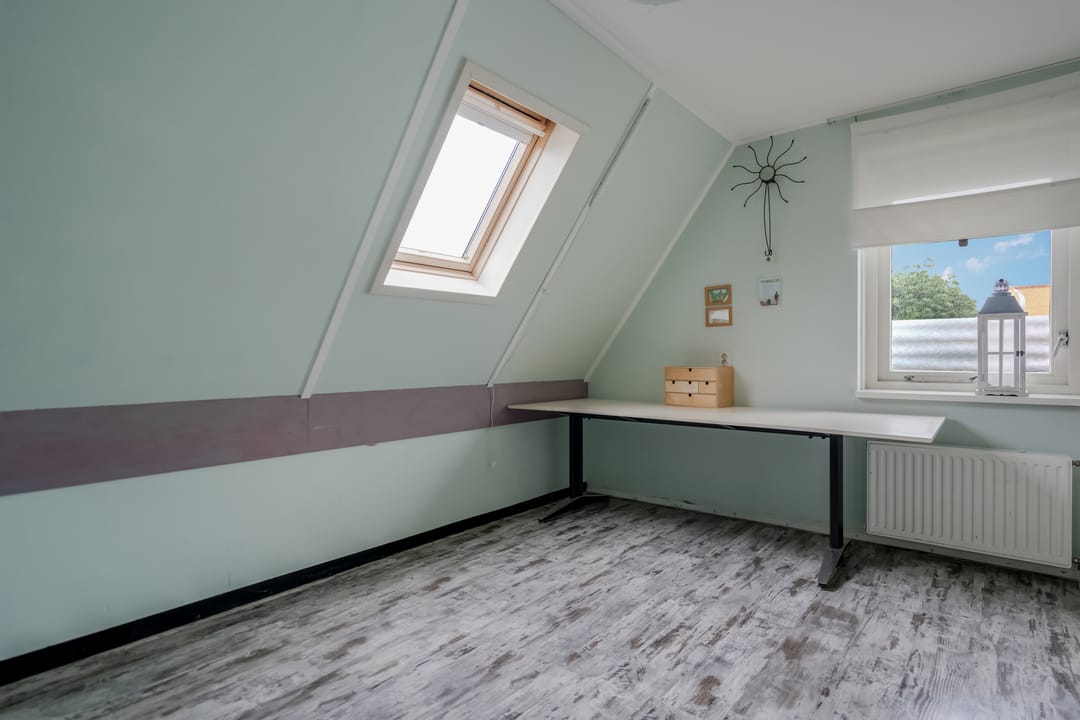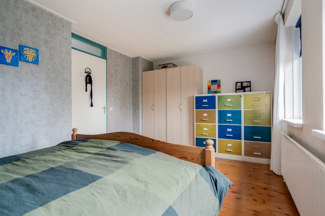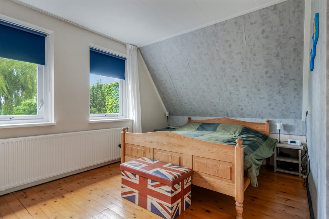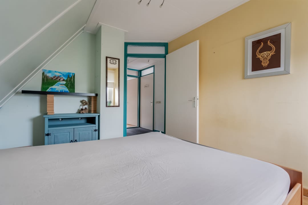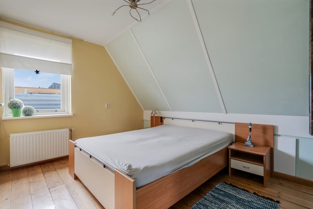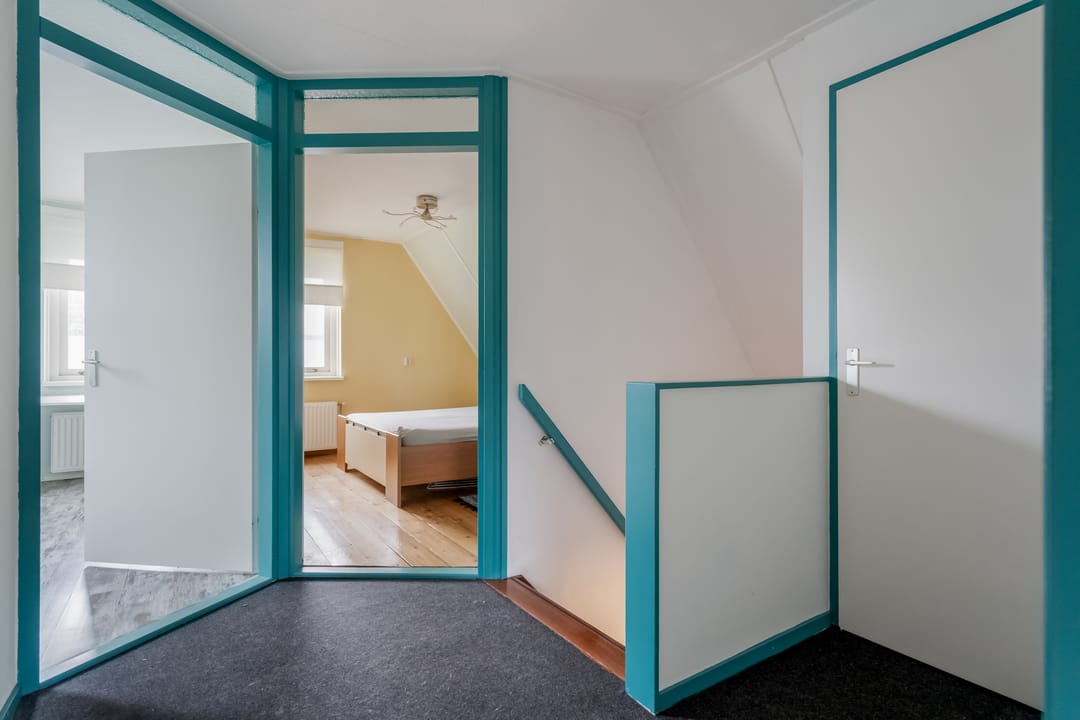 De eerste verdieping telt drie slaapkamers en een complete badkamer. De slaapkamer aan de voorzijde is ca. 12 m² en beschikt over twee ramen die zorgen voor een prettige lichtinval. De overige twee slaapkamers zijn eveneens van goed formaat en multifunctioneel inzetbaar als kinder-, werk- of logeerkamer.