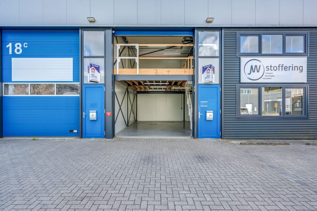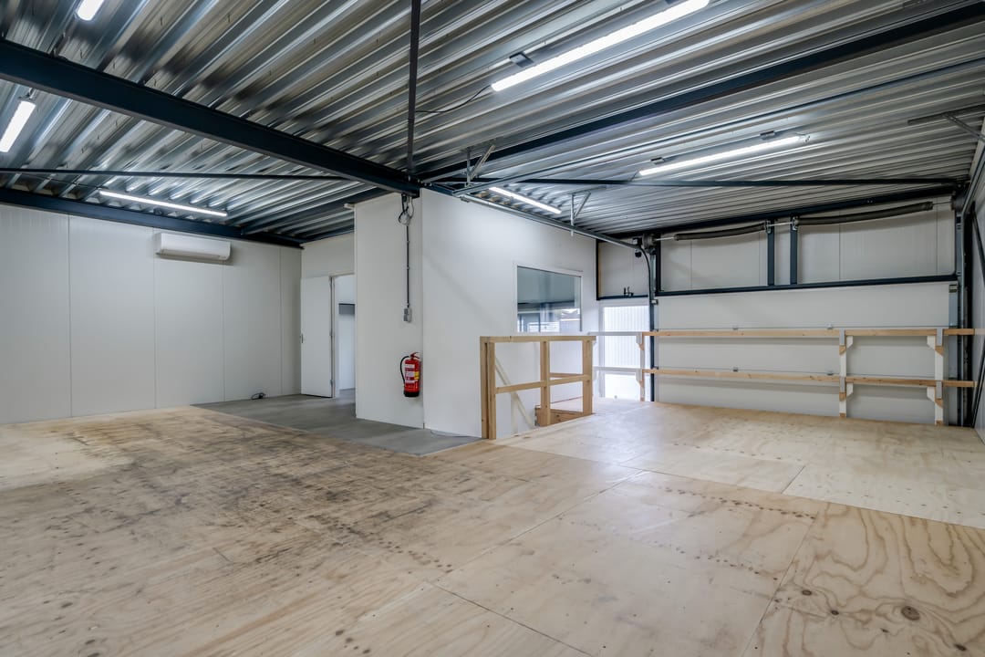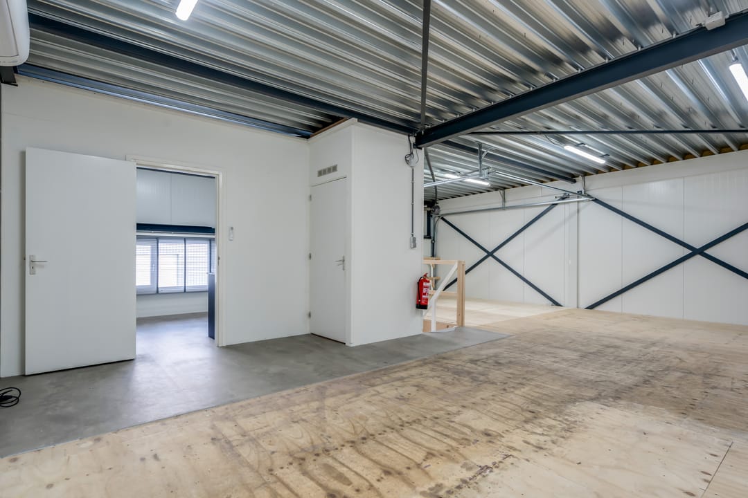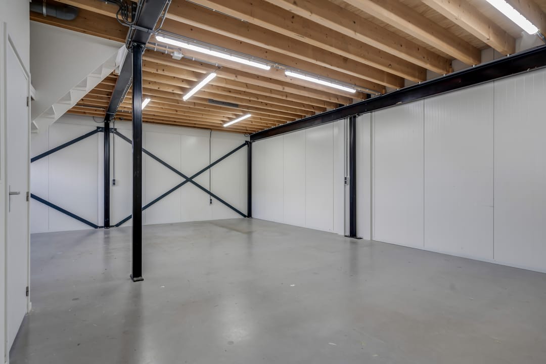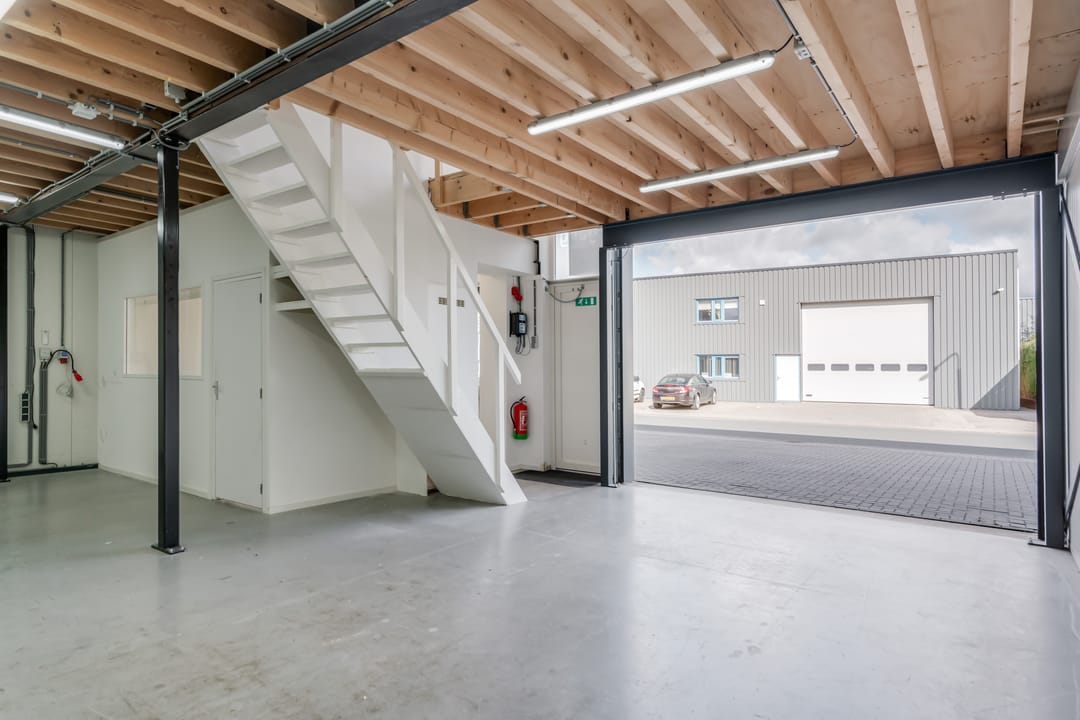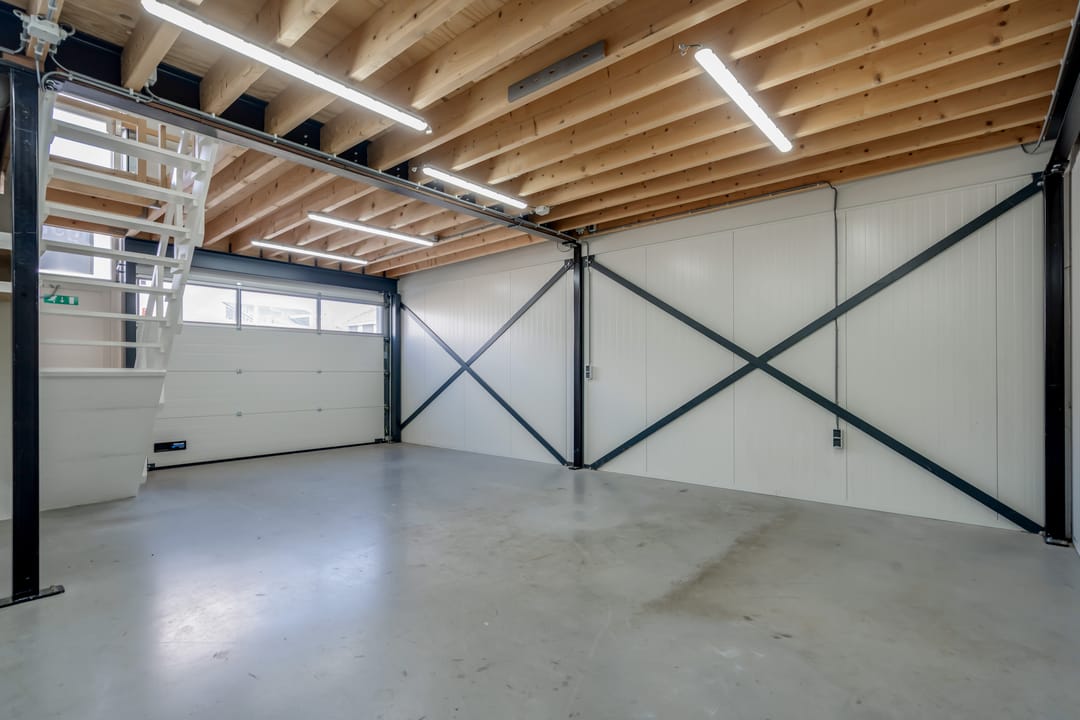 De aanwezige verdiepingsvloer zorgt voor extra ruimte, bijvoorbeeld voor opslag of aanvullende werkplekken.
