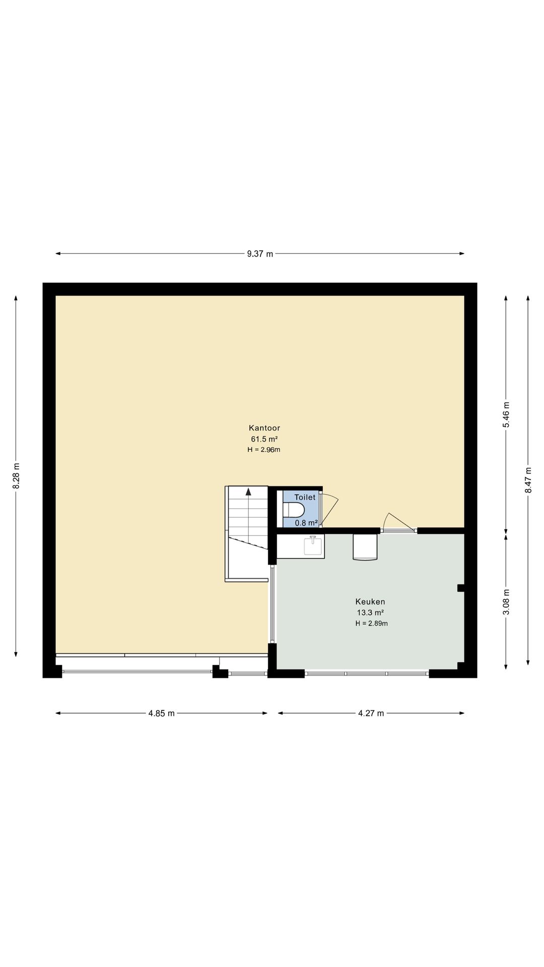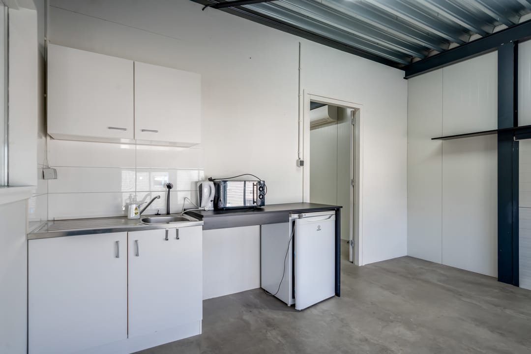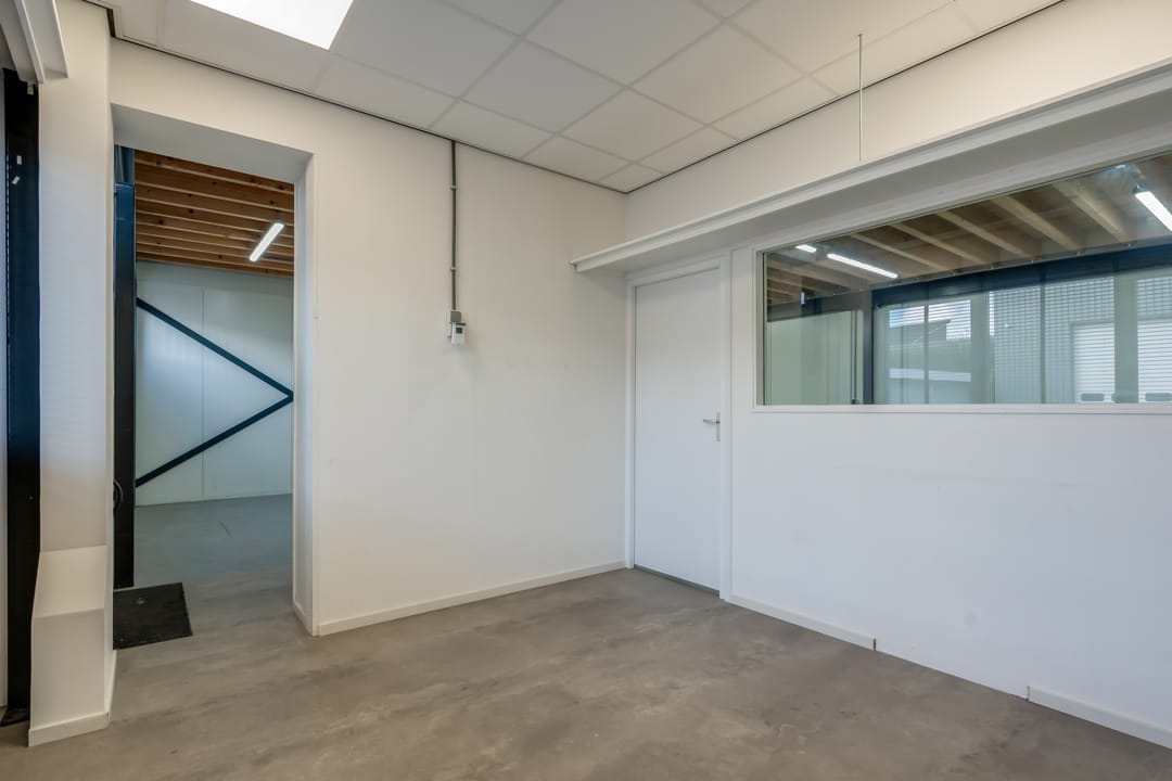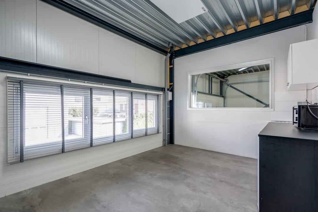 Aan de voorzijde bevindt zich een separate kantoorruimte, die geschikt is als werkplek of ontvangstruimte. Aansluitend is er een pantry en een toiletruimte aanwezig, wat het dagelijks gebruik comfortabel maakt.