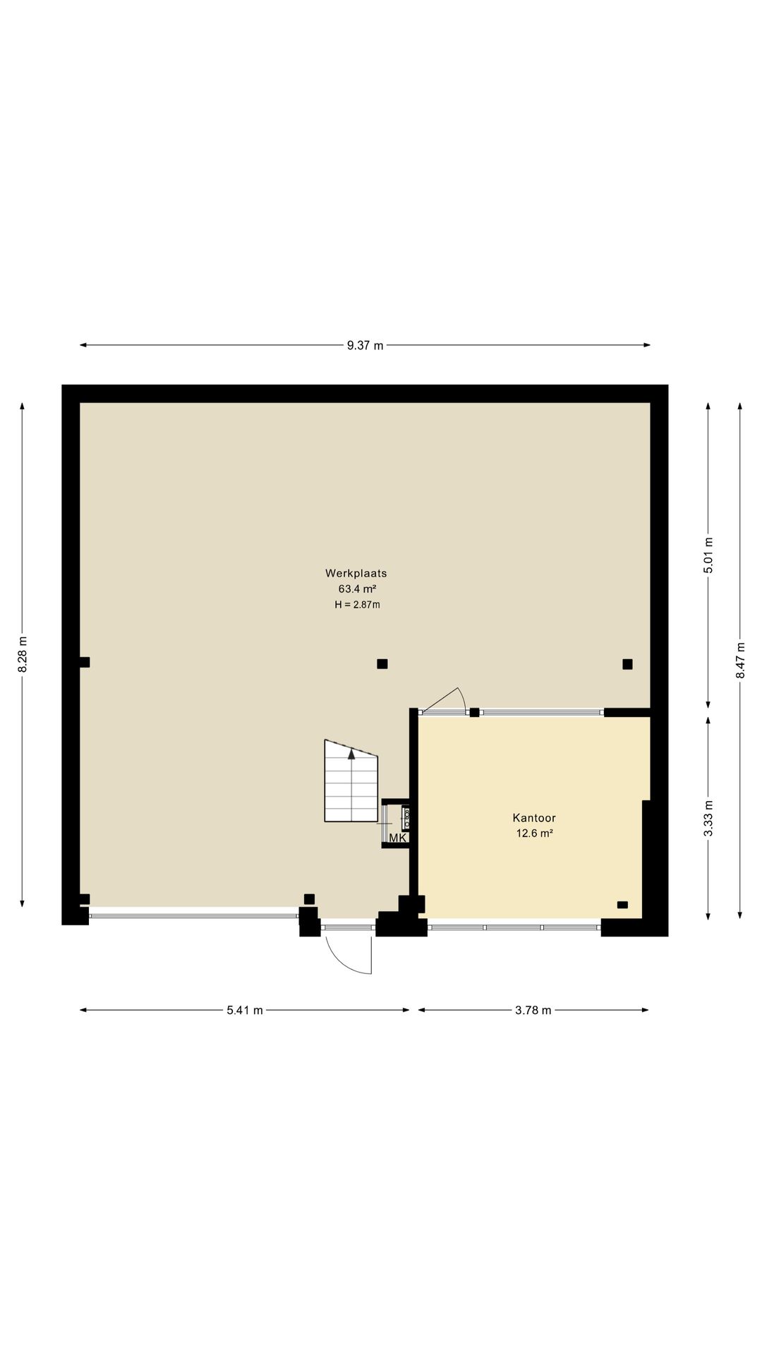 Bij binnenkomst valt direct de open en praktische indeling op. De begane grond bestaat uit een ruime werkplaats, ideaal voor opslag, productie of hobbygebruik.