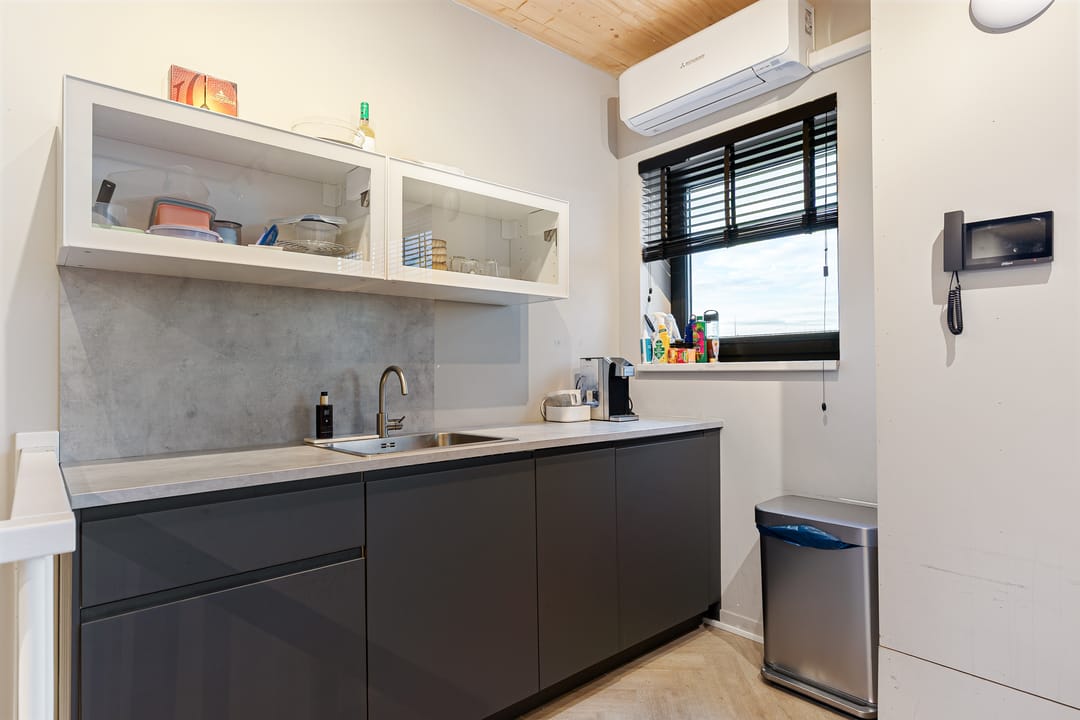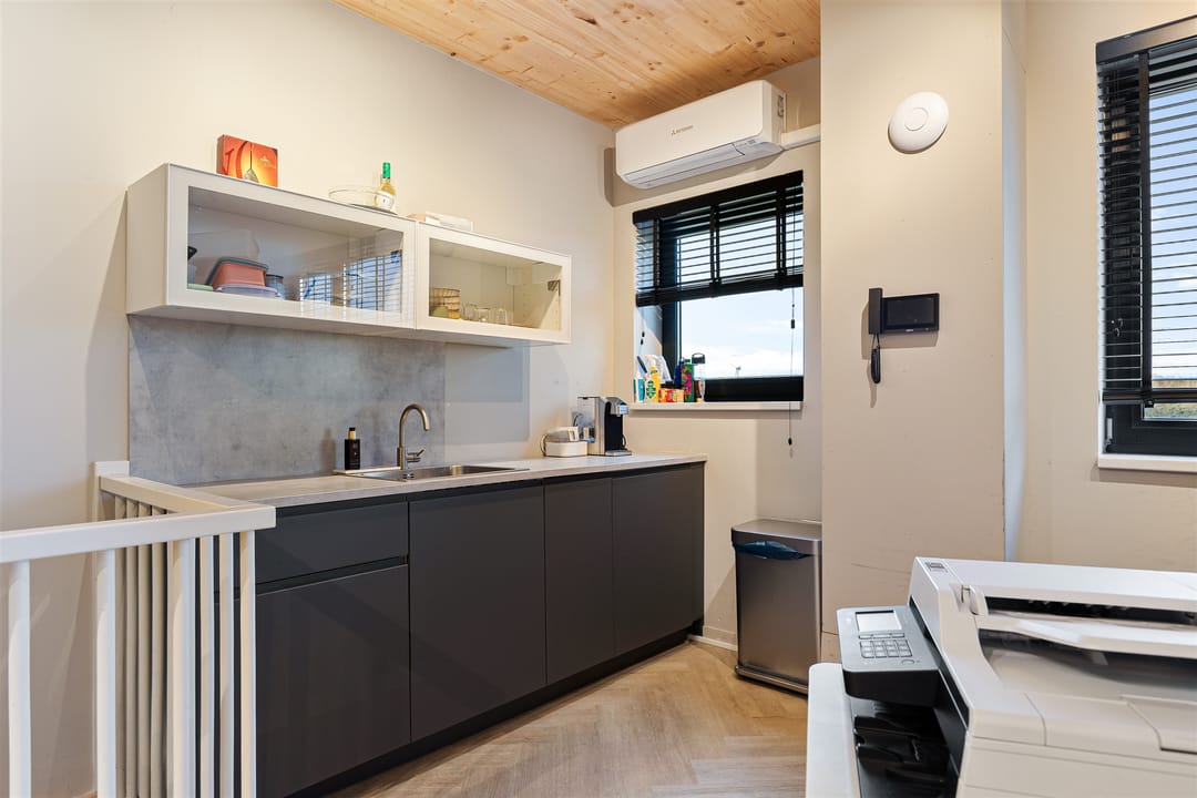 Het object is voorzien van alle gemakken en volledig afgewerkt ten behoeve van bedrijfsruimte met kantoor-/opslagruimte. Het object beschikt op de begane grond over verlichtingsarmaturen, overheaddeur, toiletvoorziening alsmede elektrapunten. De verdieping is voorzien van eveneens elektrapunten alsmede verlichtingsarmaturen en beschikt over een airco unit ten behoeve van koelen en verwarmen alsmede een pantry en noodverlichting.