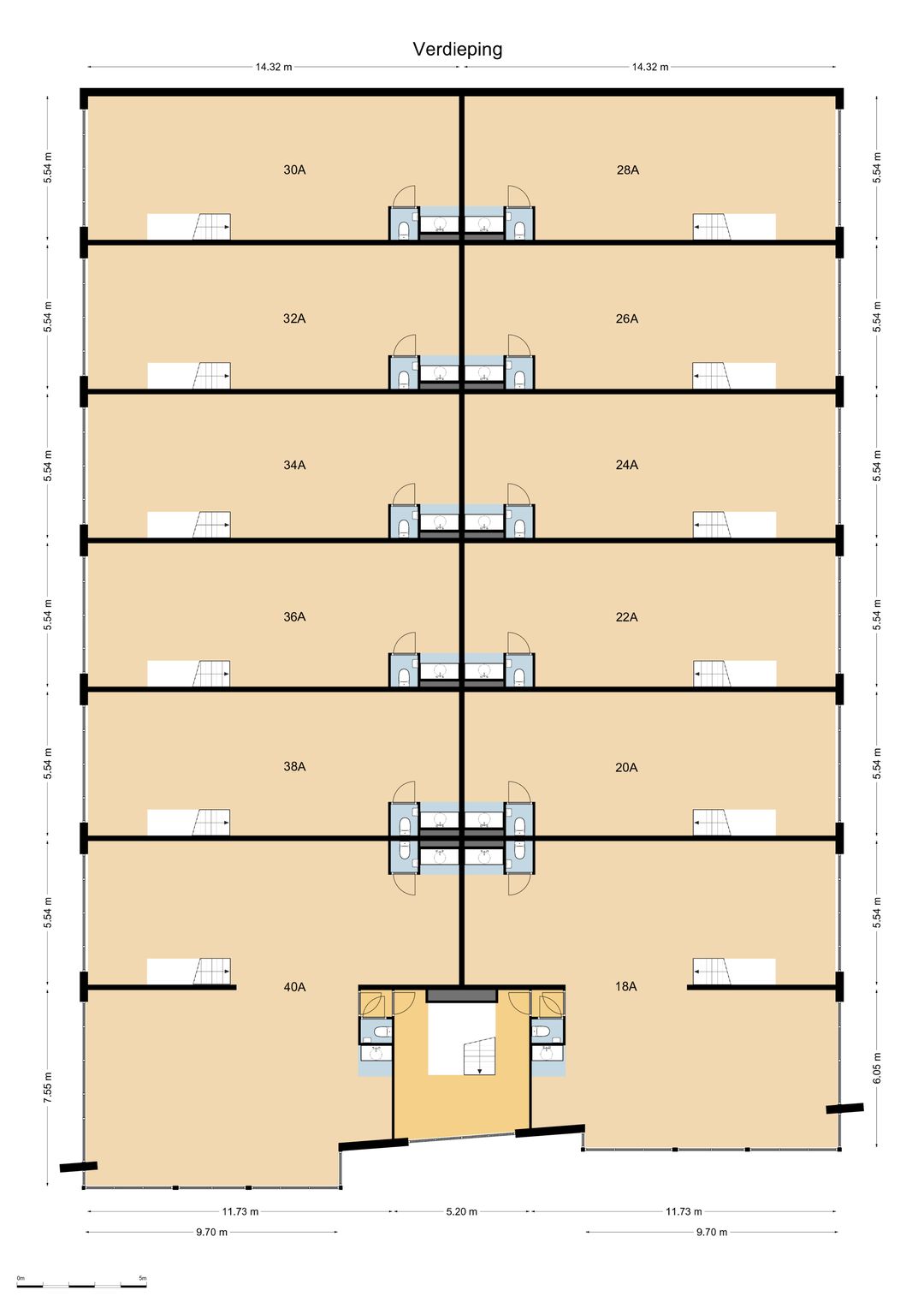 Totaal verhuurbaar vloeroppervlakte bedraagt ca. 160 m²