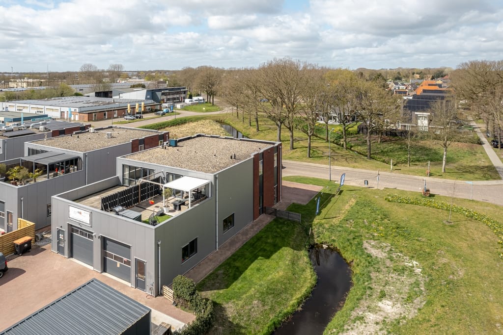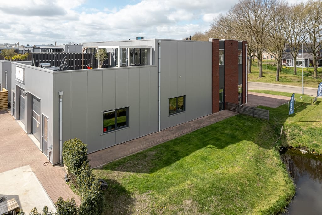 Gelegen op zowel een goede commerciële zicht locatie alsook een goede woonstand aan de rand van het bedrijventerrein en het begin van de woonwijk is dit fraaie en duurzame woon-/werkobject gesitueerd. De moderne sfeervolle bovenwoning beschikt onder meer over een eigen entree op de begane grond, twee slaapkamers en een groot dakterras op het zuiden. De bedrijfsruimten op de begane grond is thans ingericht als showroom en een separate werkplaats v.v. een overheaddeur. Tevens is er nog een vrijstaande opslagloods aanwezig. Dit fraaie pand is - naast de woonfunctie - voor diverse bedrijfsactiviteiten geschikt.