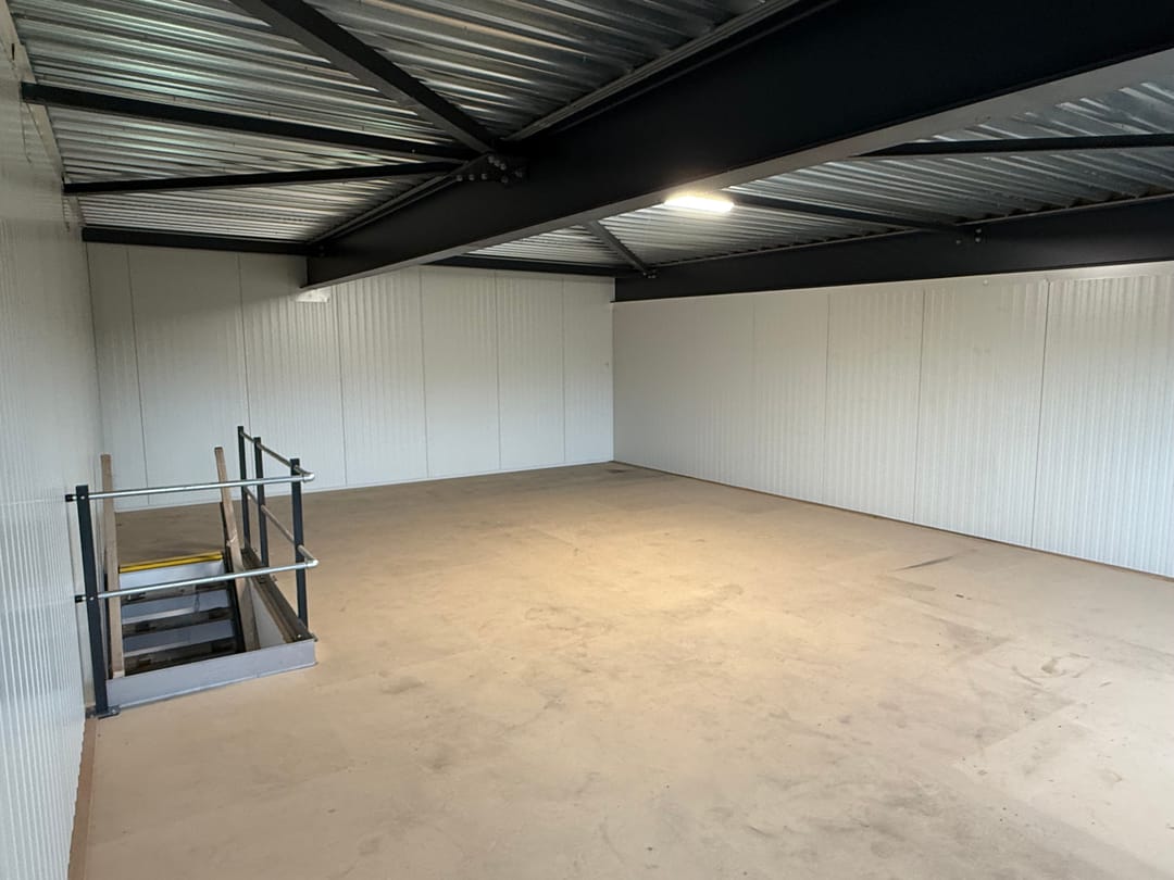 - Rooflights, overhead doors, three-phase electric power, concrete floor, toilet and pantry