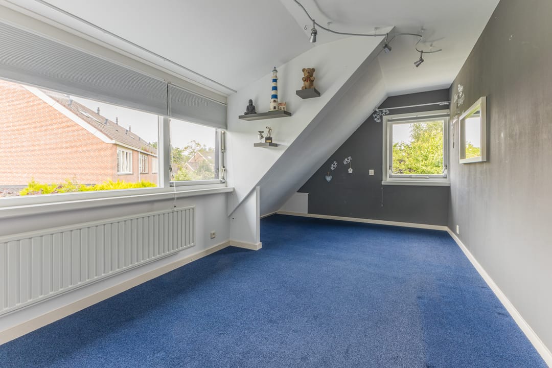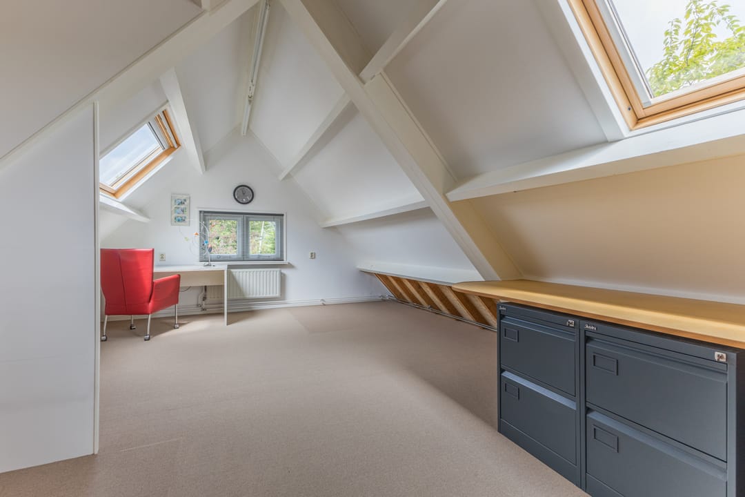 Overloop, 4 slaapkamers, waarbij slaapkamer 1 en 4 met elkaar zijn verbonden, dakkapel.