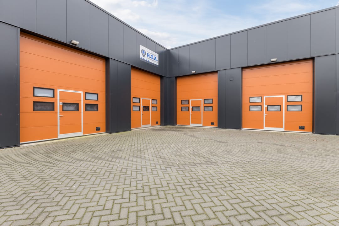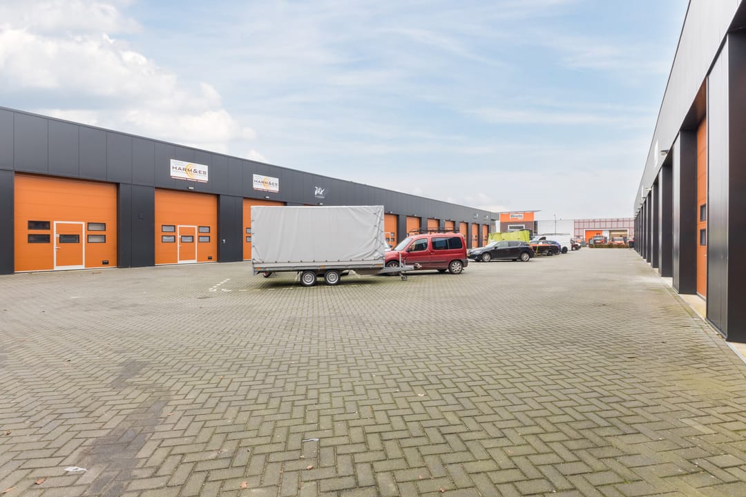 De bedrijfsunit is o.a. voorzien van een elektrische overheaddeur 3,5m x 4,0m (b x h) met ingebouwde loopdeur, krachtstroom, een urinoir en een pantry. Het gebouw is opgezet in een U-vorm met een royaal, afsluitbaar binnenterrein bestemd voor parkeren. Op dit voorgelegen binnenterrein is één eigen parkeerplaats behorende bij de unit.