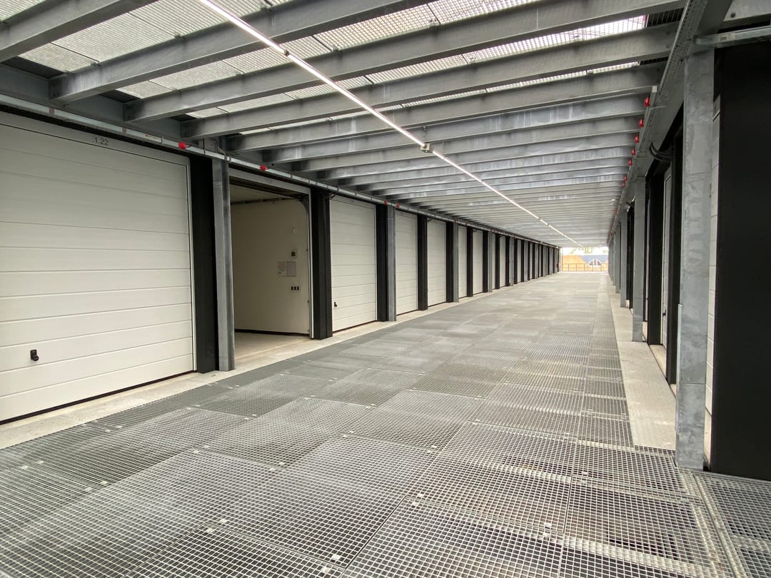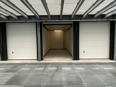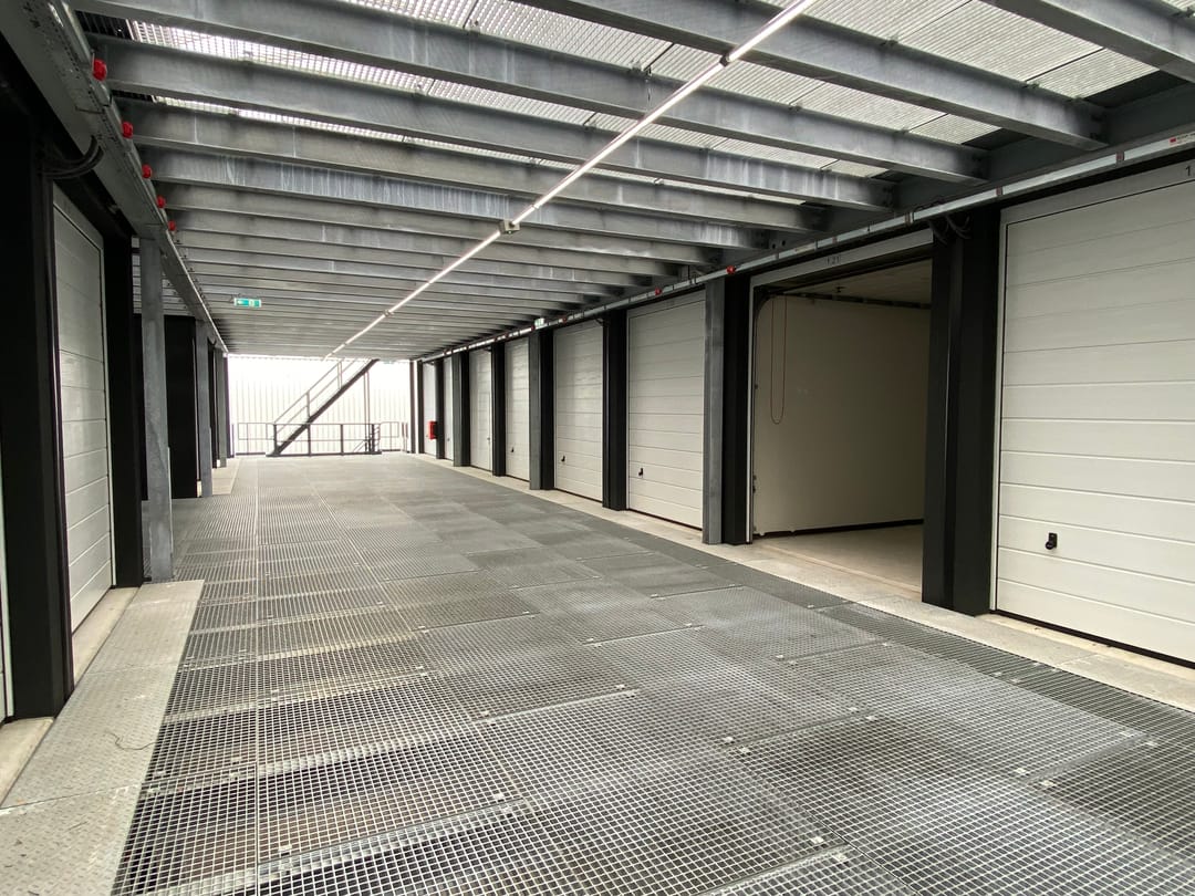 In het recent gebouwde garageboxenpark Multipark I te Heerhugowaard biedt VLIEG Bedrijfsmakelaars nu deze garagebox van het type 18 XL aan. Het betreft unit 1.21 gelegen op de eerste verdieping. De garagebox heeft buitenwerkse maten van 6 meter x 3 meter x 3,5 meter (L x B x H) en is voorzien van een elektra aansluiting (8A) en extra vloerversterking (tot 500 kg/m²). De handbediende sectionaaldeur heeft een inrijhoogte van 2,9 meter en een inrijbreedte van 2,5 meter. Door de ligging tegenover de doorsteek heeft deze unit uitstekende indraaimogelijkheden.