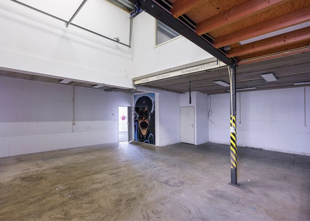 De bedrijfsruimte is via de zijkant toegankelijk via zowel een loopdeur als een overheaddeur. Een gedeelte van deze bedrijfsruimte heeft geen verdiepingsvloer, waardoor hier een vrije hoogte van circa 5,86m is.