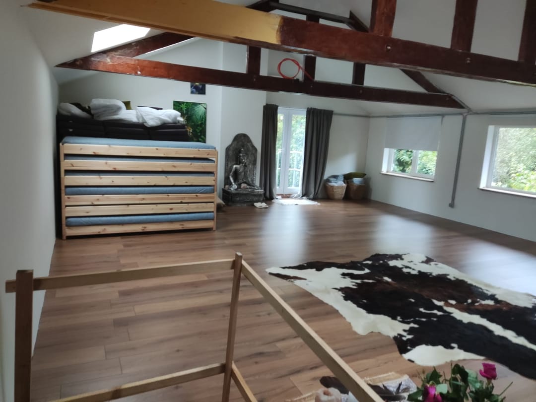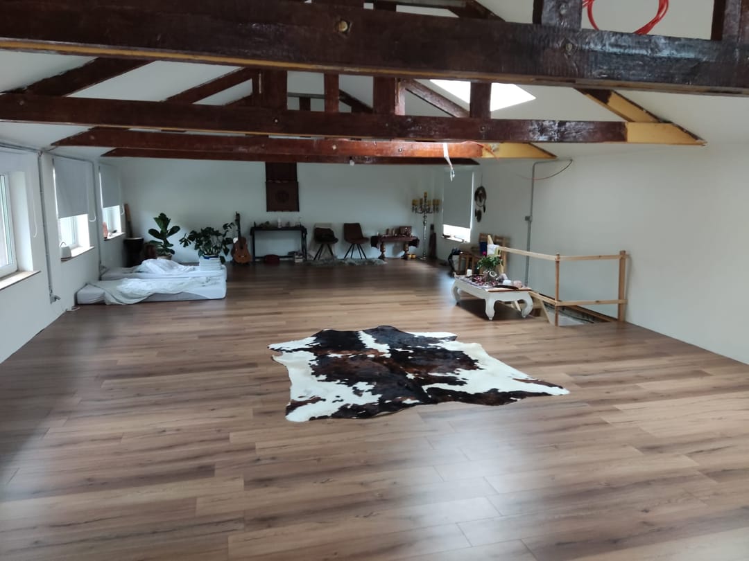 Op de 1e verdieping boven is nog eens ca. 100 m² aan ruimte beschikbaar, deze is via de binnen- en buitenzijde bereikbaar.